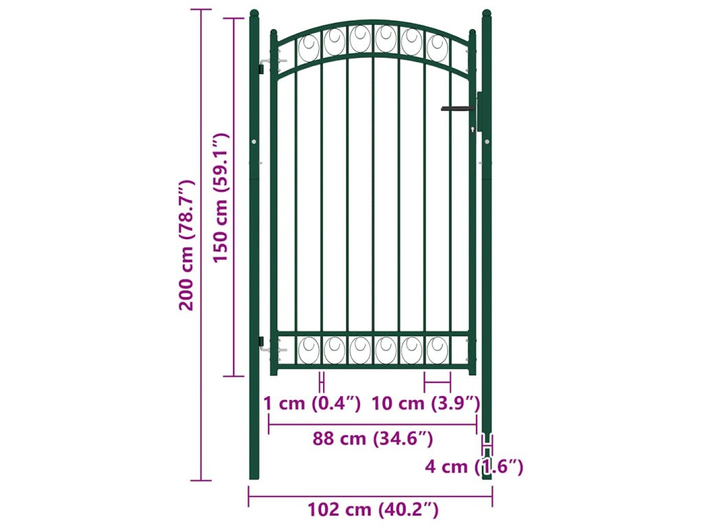 Elegantní zaoblený design naší branky je velmi atraktivní. Silné vodorovné příčky zpevňují její rám a zvyšují její bezpečnost. Branka tak tvoří působivý vstup na váš pozemek. Je vyrobená z vysoce odolné oceli a ošetřená práškovým lakem, který ji chrání před rzí a korozí. Zahradní branka je rovněž vybavena zamykacím systémem se třemi zahrnutými klíči. Dodáváme ji spolu se dvěma robustními sloupky s pevnými závěsy pro snadnou instalaci.