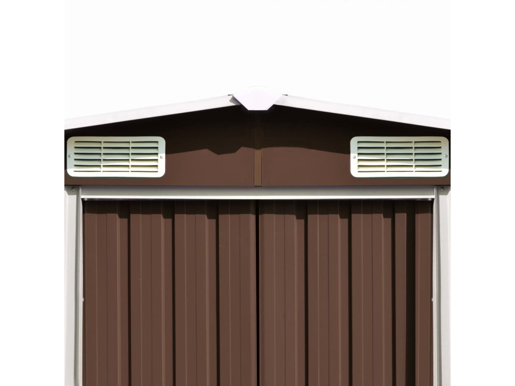 Tento úložný přístřešek má větrací otvory v přední i zadní části, které zajišťují vynikající ventilaci. Dvojité posuvné dveře v přední části umožňují snadný vstup a výstup. Konstrukce z pozinkované oceli spolu s práškovým nástřikem zaručují pevnost a odolnost kůlny na nářadí.