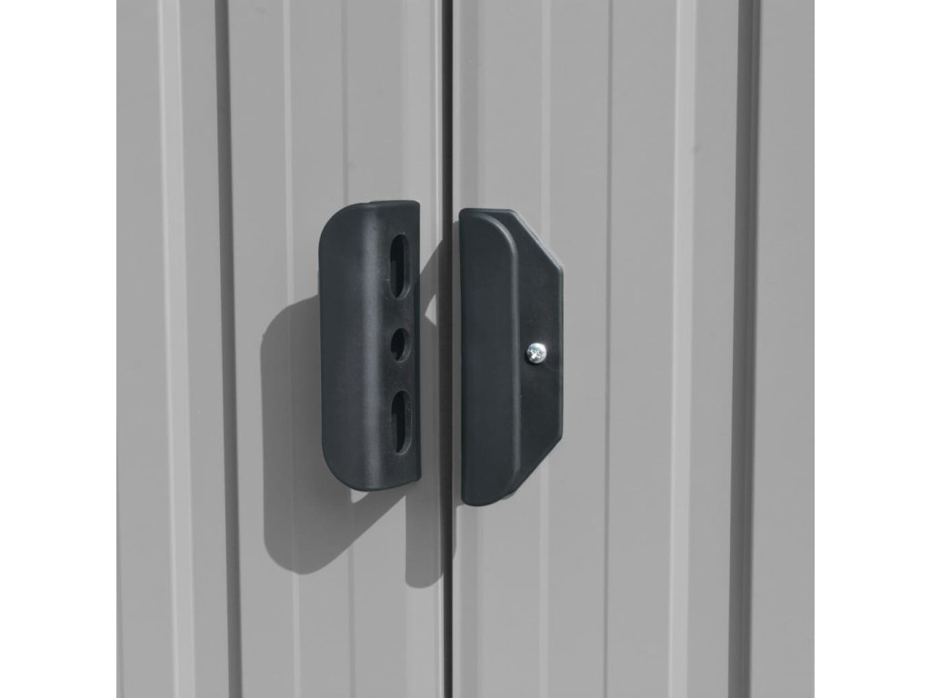 Tento úložný přístřešek má větrací otvory v přední i zadní části, které zajišťují vynikající ventilaci. Dvojité posuvné dveře v přední části umožňují snadný vstup a výstup. Konstrukce z pozinkované oceli spolu s práškovým nástřikem zaručují pevnost a odolnost kůlny na nářadí.