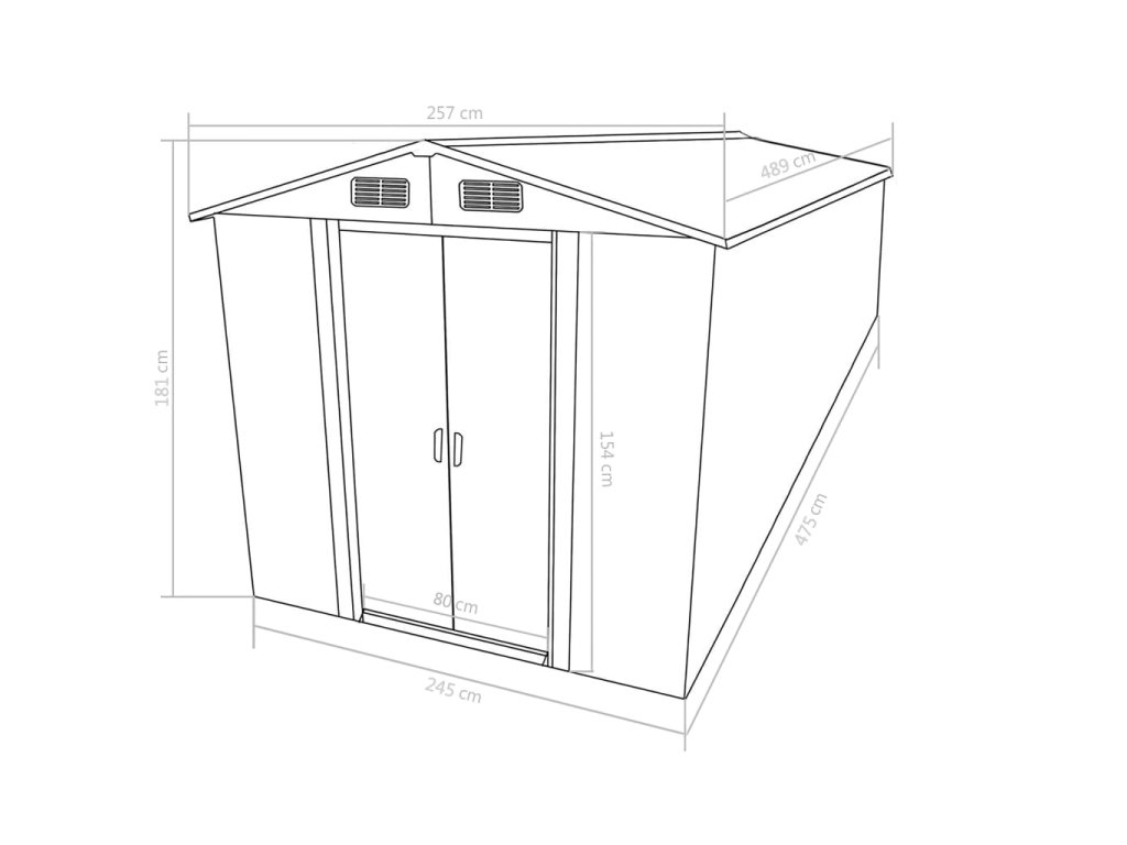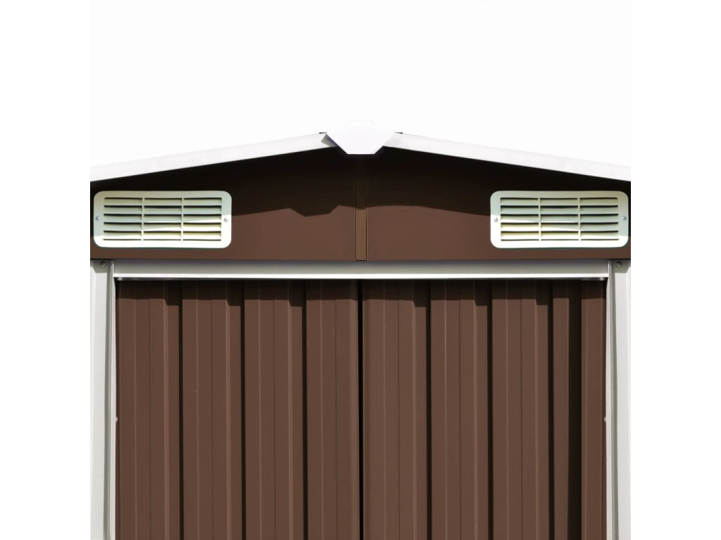 Tento úložný přístřešek má větrací otvory v přední i zadní části, které zajišťují vynikající ventilaci. Dvojité posuvné dveře v přední části umožňují snadný vstup a výstup. Konstrukce z pozinkované oceli spolu s práškovým nástřikem zaručují pevnost a odolnost kůlny na nářadí.