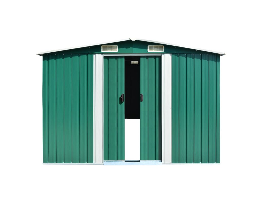 Tento úložný přístřešek má větrací otvory v přední i zadní části, které zajišťují vynikající ventilaci. Dvojité posuvné dveře v přední části umožňují snadný vstup a výstup. Konstrukce z pozinkované oceli spolu s práškovým nástřikem zaručují pevnost a odolnost kůlny na nářadí.
