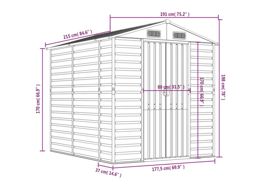 - Dostatek úložného prostoru: Tato kovová kůlna poskytuje dostatek prostoru pro uložení palivového dřeva, zahradního nářadí, nábytku, vybavení a dalších věcí.
