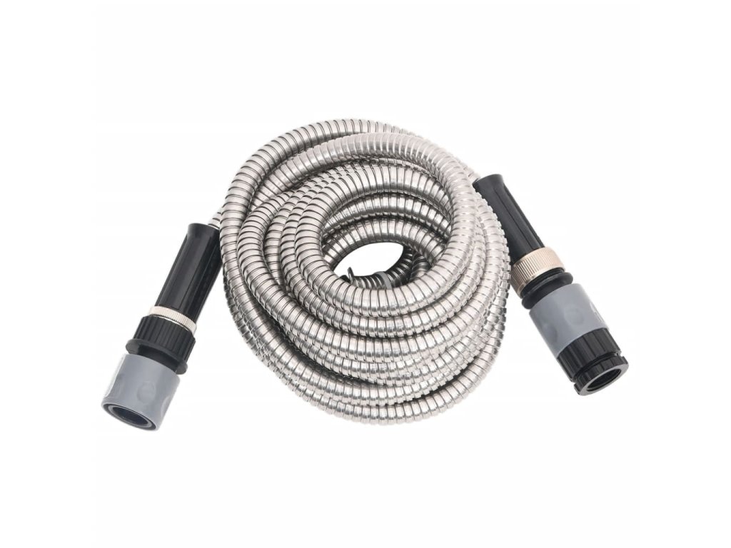 Tato zahradní hadice z nerezové oceli s rozprašovací tryskou je skvělým pomocníkem pro zavlažování zahrady a usnadňuje zalévání rostlin.