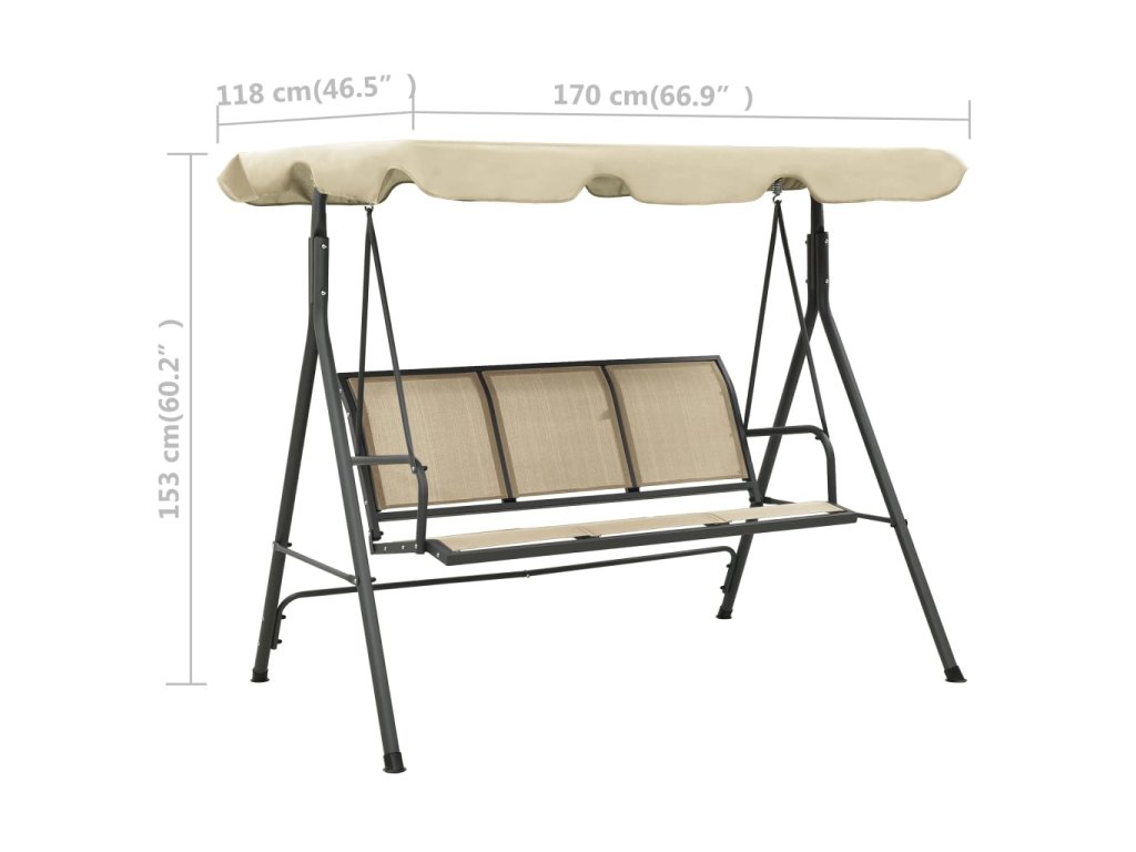 Houpací lavice má pevný ocelový rám s dlouhou životností a odolností vůči klimatickým vlivům. Práškově lakované ocelové trubky bezpečně spojují houpací lavici k rámu. Houpačka je také vybavená polyesterovou stříškou, která vás ochrání před přímým slunečním zářením při čtení nebo odpočinku v letních dnech. Textilní sedák a opěradlo jsou velmi pohodlné.