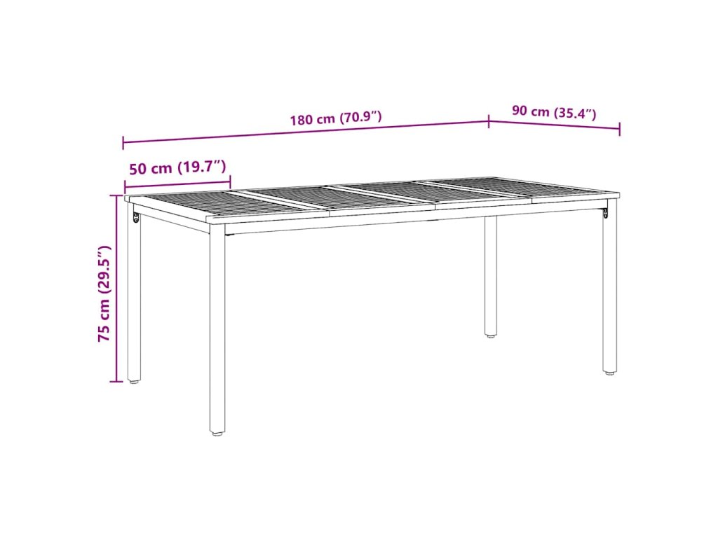 Tento moderní zahradní jídelní set dodává tvým venkovním setkáním styl. S jednoduchýma liniema a minimem zbytečností skvěle sedne k současnému vzhledu a poskytuje ti praktický prostor na jídlo. Představ si, jak pořádáš krásnou večeři pod hvězdama, se stolem, který vypadá sofistikovaně a je super odolný. Ideální pro vytváření nezapomenutelných vzpomínek s rodinou a přáteli.
