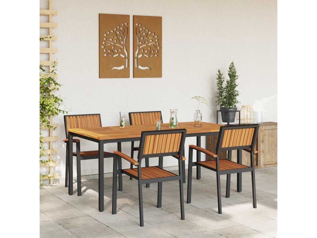 - Materiály: Super kombinace masivního akáciového dřeva a silné oceli, suitable for co vydrží. Akácie má krásnou texturu a je silný, skvěle se doplňuje se solidními ocelovými rámy – ideální do každého počasí.