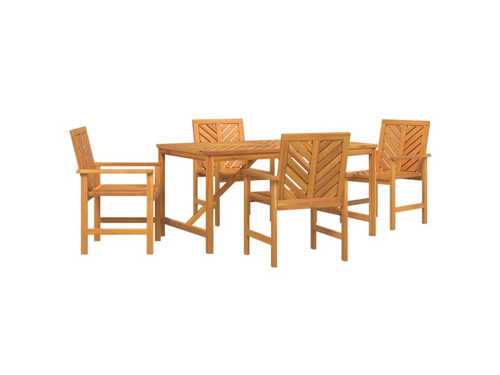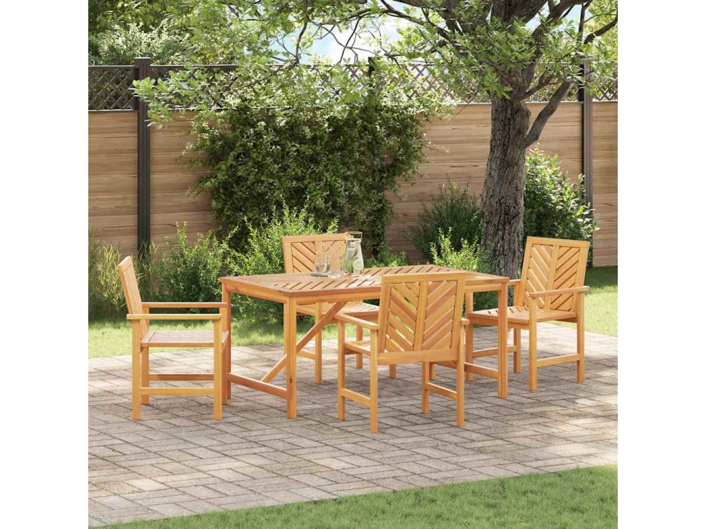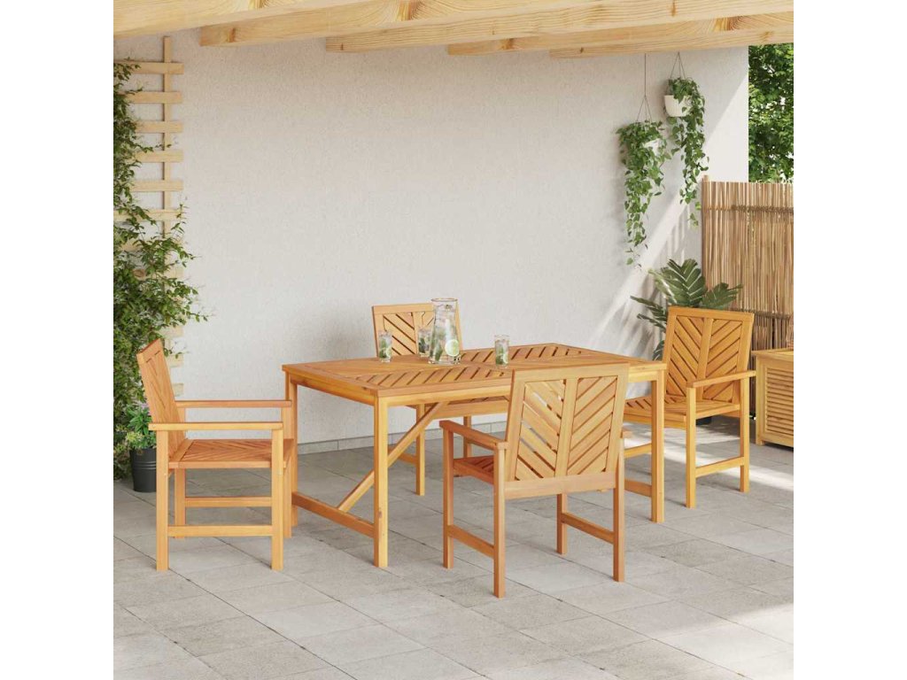 - Kvalitní materiály: Vyrobeno z masivního akáciového dřeva, tenhle set je pevný a vypadá skvěle. Akácie je známá svojí krásnou strukturou a zvládá různé venkovní podmínky, což ji dělá ideální pro každodenní používání. Tento materiál dodává rustikální nádech, ale je dostatečně odolný pro venkovní využití.