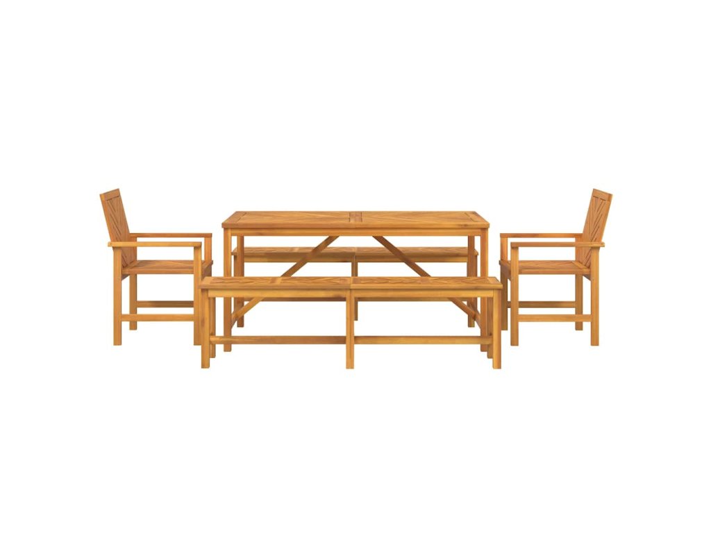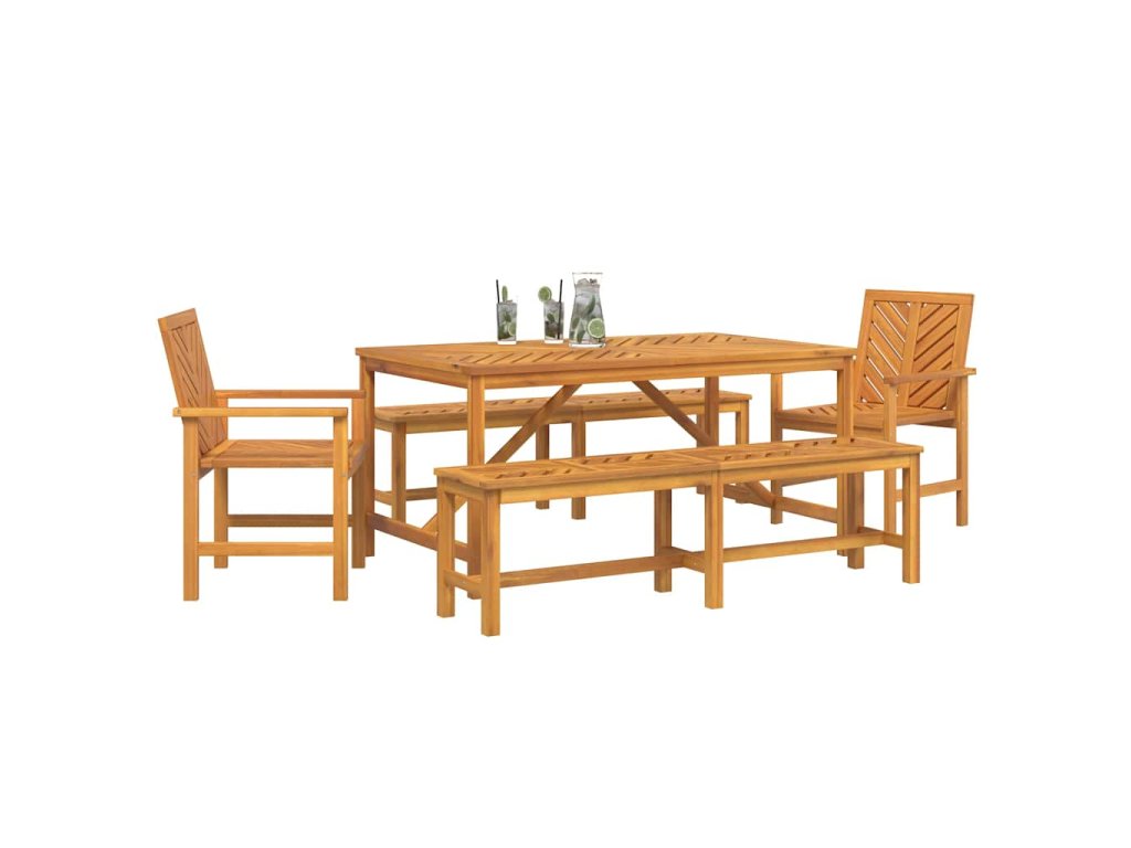 - Kvalitní materiály: Vyrobeno z masivního akáciového dřeva, tenhle set je pevný a vypadá skvěle. Akácie je známá svojí krásnou strukturou a zvládá různé venkovní podmínky, což ji dělá ideální pro každodenní používání. Tento materiál dodává rustikální nádech, ale je dostatečně odolný pro venkovní využití.