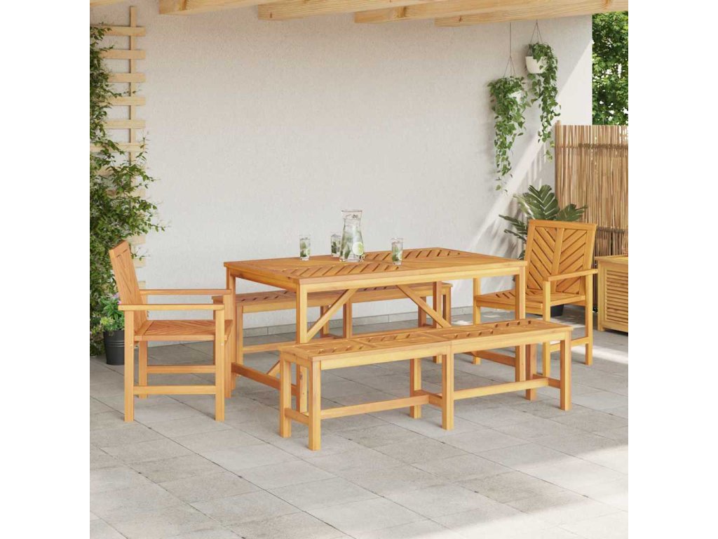 Zahradní jídelní set z akáciového dřeva nabízí skvělou kombinaci funkce a prvotřídního stylu pro tvůj venkovní život. S minimalistickým nádechem předvádí čisté linie a přírodní kouzlo masivního akáciového dřeva, který se perfektně hodí do různých zahradních prostředí. Je ideální pro malé, intimní večeře a vytváří pěkný středobod ve tvé zahradě nebo na terase – ideální pro relaxované večery nebo klidné chvíle.