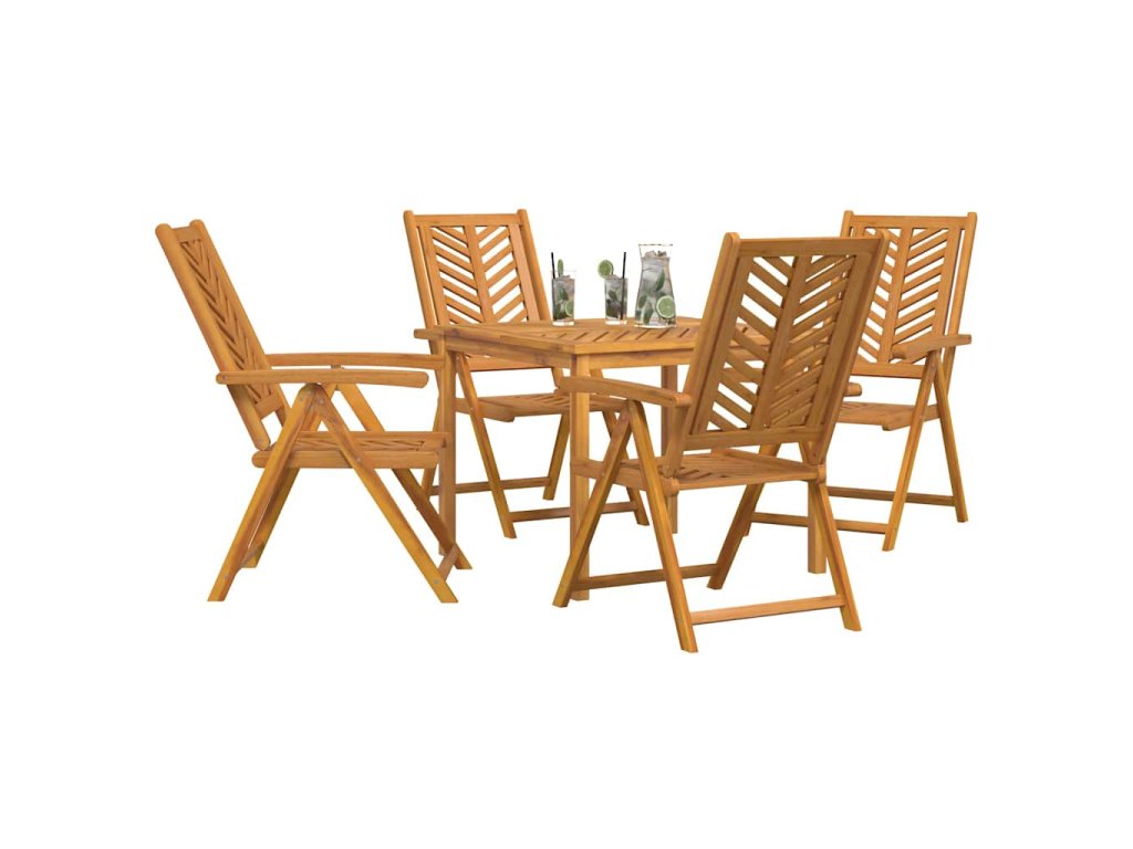 - Stylové ergonomické pohodlí Tento jídelní set je navržen pro pohodlí, má akáciové dřevěné opěrky a sedadla, která dělají jídlo příjemnou záležitostí. Jeho minimalistický vzhled vytváří uvolněnou atmosféru, ideální na dlouhé večeře a příjemné rozhovory.