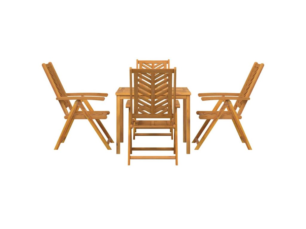 - Materiál akáciové dřevo Tento jídelní set je udělaný z masivního akáciového dřeva, které spojuje krásu a odolnost. Vypadá skvěle a je odolné, ideální pro venkovní nábytek. Olejovaný povrch krásně ukazuje přírodní vzhled dřeva a chrání ho před vlhkostí, takže můžete být v klidu venku. Jak rám, tak povrch jsou z tohoto pevného dřeva, což zajišťuje, že set je solidní.