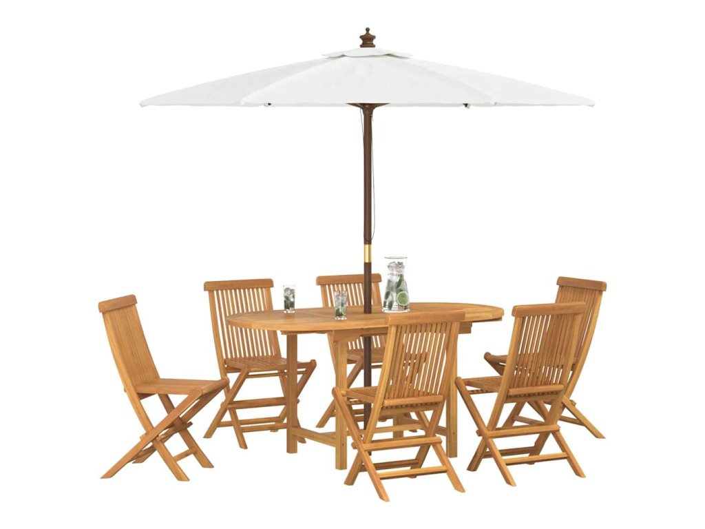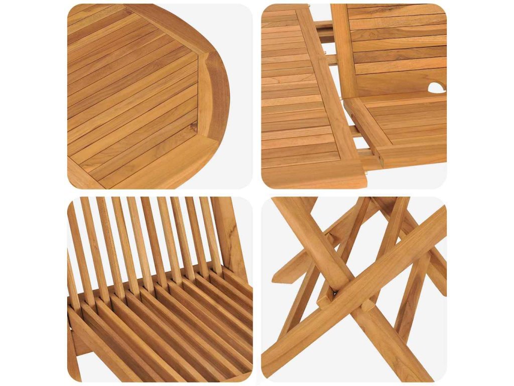 - Odolnost proti povětrnostním vlivům: Tato souprava má olejovaný povrch, který chrání před sluncem a deštěm. Díky přirozeným vlastnostem teaku ji můžeš bez obav umístit do zahrady, na terasu nebo balkon.