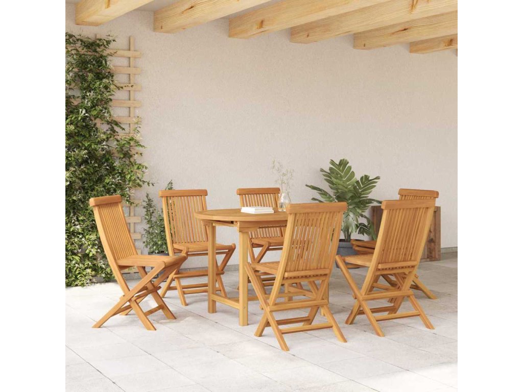 - Materiál z masivního teaku: Teakové dřevo je robustní a odolné, perfektní pro venkovní nábytek. Snadno zvládá vlhkost a škůdce a jeho přirozený hnědý odstín dodává styl, který obstojí v čase.