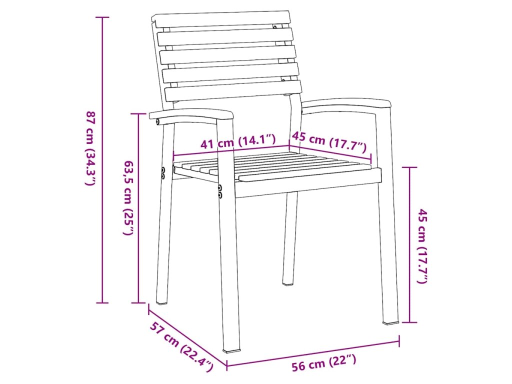 - 6 x Zahradní židle: 57 x 56 x 87 cm (D x Š x V)