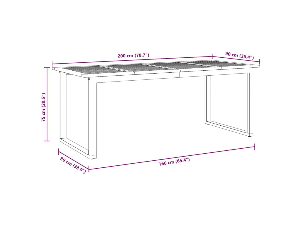 - 1 x Zahradní stůl: 200 x 90 x 75 cm (D x Š x V)