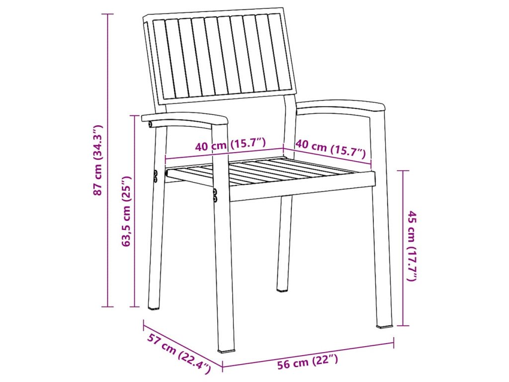 - 6 x Zahradní židle: 57 x 56 x 87 cm (D x Š x V)