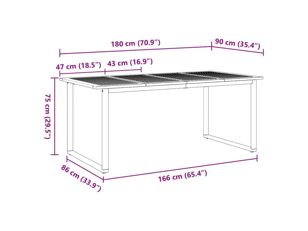 - 1 x Zahradní stůl: 180 x 90 x 75 cm (D x Š x V)