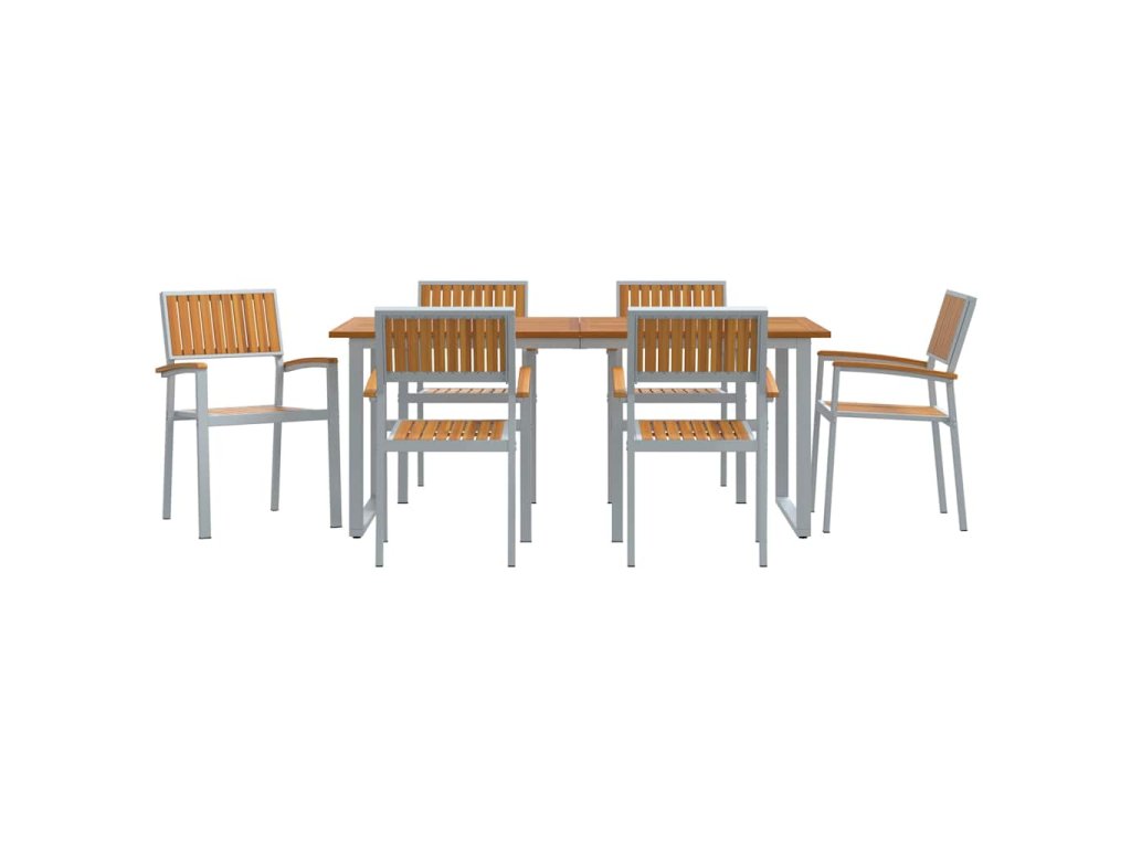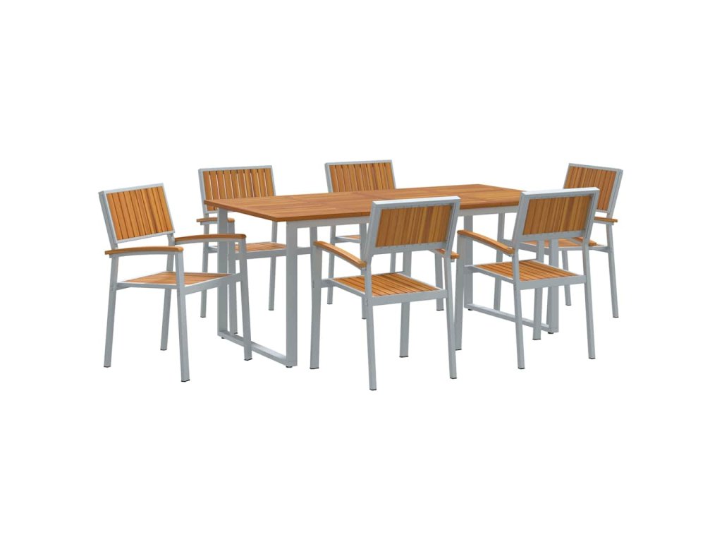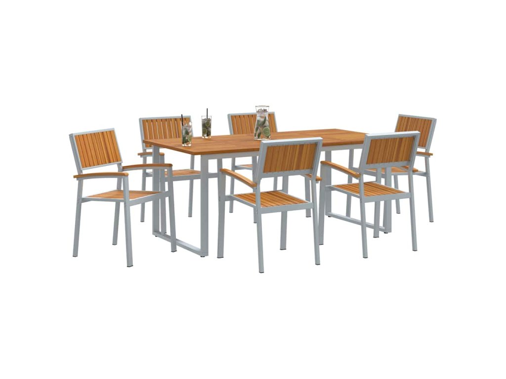 Tento moderní zahradní jídelní set je stvořený pro současné venkovní prostory. Nabízí stylové a praktické řešení pro jídlo venku v zahradách a na terasách. Jeho jednoduché a čisté linie se skvěle hodí do různých venkovních prostředí a poskytují pohodové místo pro jídlo a společenské chvíle. Povrch akáciového dřeva je krásně bohatý a geometrická struktura vypadá elegantně, takže se hodí do každé venkovní atmosféry.