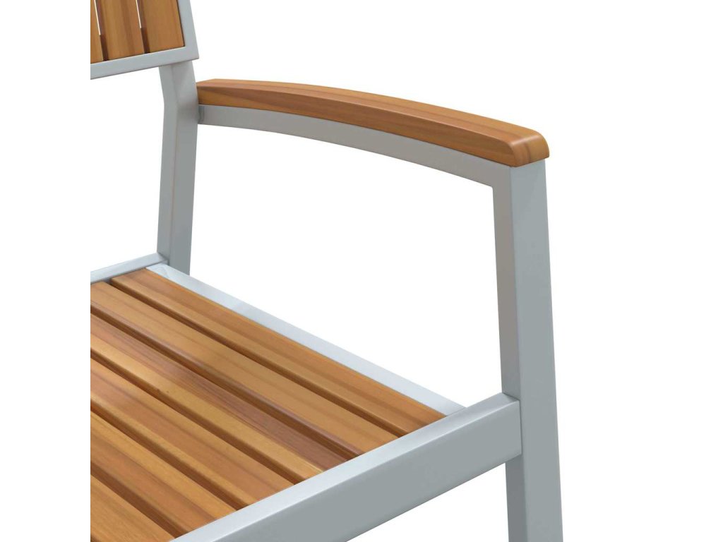 - Součásti: Set obsahuje pohodlné opěrky rukou a opěrky zad vyrobené z akáciového dřeva, a k tomu ještě prostorný obdélníkový stůl. Použití akáciového dřeva zajišťuje pohodu a trvanlivost, což je skvěle pro rodinné večeře a venkovní party.