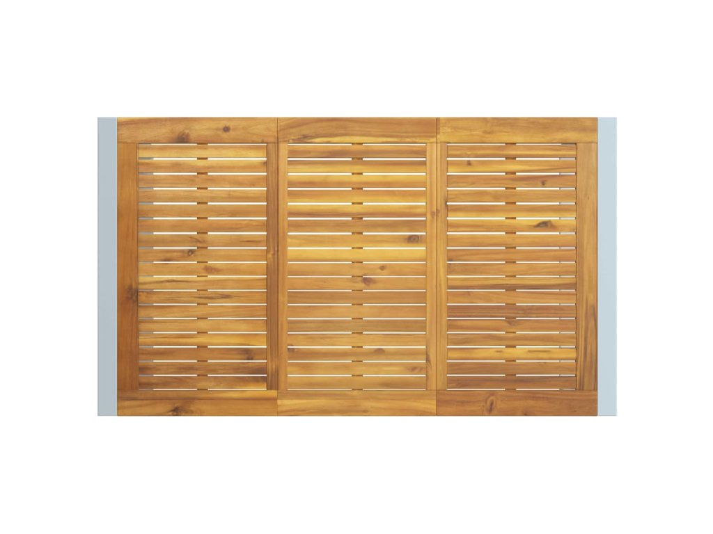 - Pevné materiály Tenhle set je vyrobený z masivního akáciového dřeva, má krásný přírodní vzhled, suitable for co dlouho vydrží. Spevněná ocelová konstrukce mu dodává stabilitu a zvládne i různé počasí. Navíc ochranný nátěr mu dodává hezký vzhled a zajišťuje ochranu.