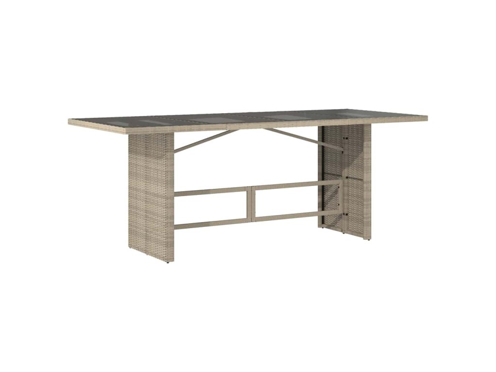Tento moderní zahradní jídelní set se vyznačuje elegantním tvarem, ideální pro venkovní stravování. Je vyrobený z příjemně světle šedého poly ratanu, který dodá vaší zahradě nebo terase moderní a nadčasový vzhled. S jeho čistými liniemi a minimálním zdobením si užijete pohodlné posezení s rodinou či blízkými. Skvělý pro jakékoli venkovní akce, s vysokým opěradlem a robustní skleněnou deskou, což zajišťuje nejen estetičnost, ale i praktičnost pro brunchy, večeře či relaxační setkání.