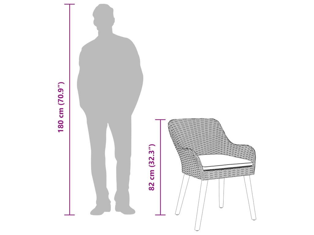 Tento moderní zahradní jídelní set je fajn volba pro venkovní stravování na zahradách i terasách. S čistýma a štíhlýma liniema, které jsou charakteristický pro moderní styl, set se skládá z prostorného jídelního stolu a pohodlných židlí, které vytvářejí příjemnou atmosféru pro jídlo pod širým nebem. S přehozem z poly ratanu v hezké světle šedé se set jednoduše sladí s tvým venkovním prostorem a poskytne ti jak estetickou radost, tak praktickou funkčnost.