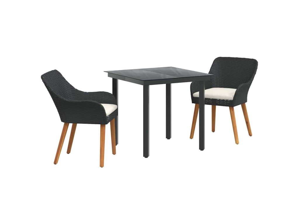 Zahradní jídelní souprava s polštářem 3 pcs Černá polyratan 3261670