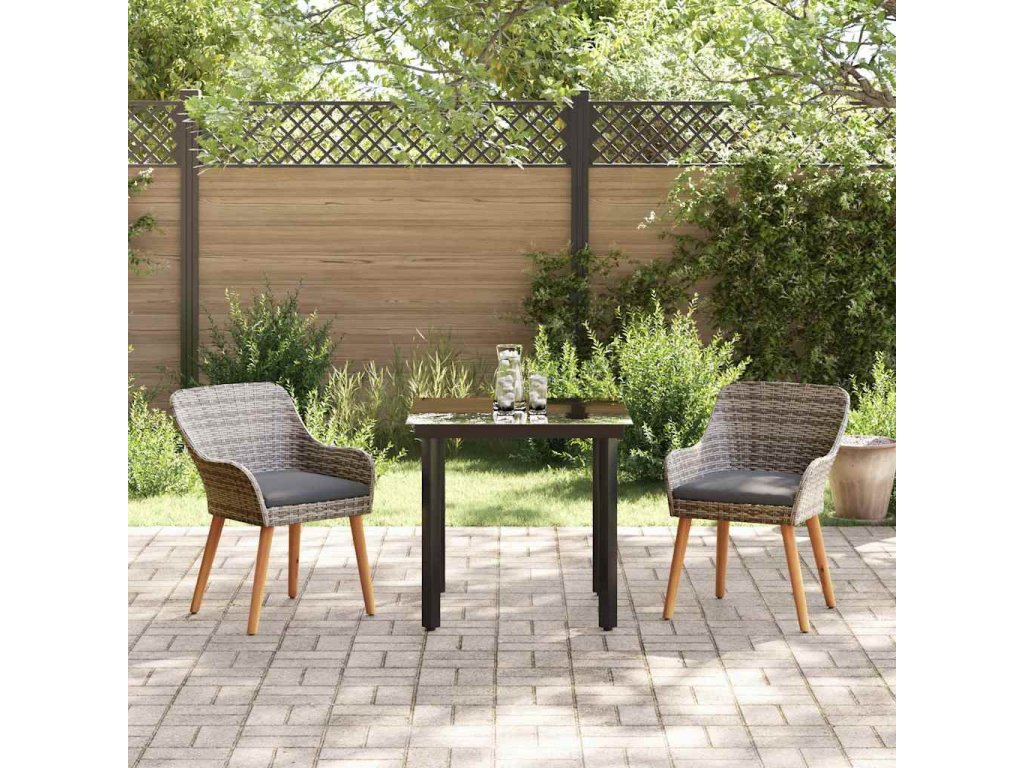 Zahradní jídelní souprava s polštářem 3 pcs Šedá polyratan 3261684