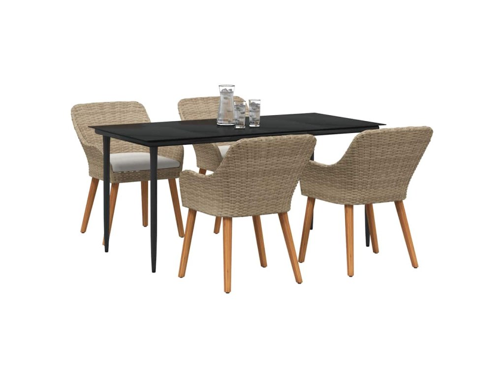 Zahradní jídelní souprava s polštářem 5 pcs Béžová polyratan 3261694
