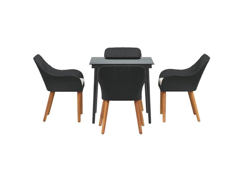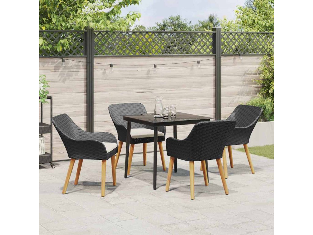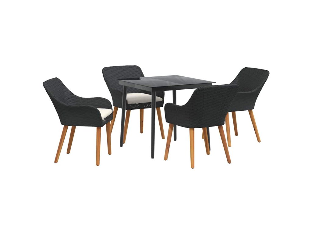 Zahradní jídelní souprava s polštářem 5 pcs Černá polyratan 3261664