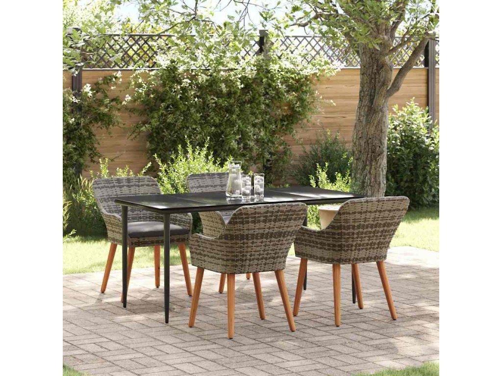 Zahradní jídelní souprava s polštářem 5 pcs Šedá polyratan 3261680