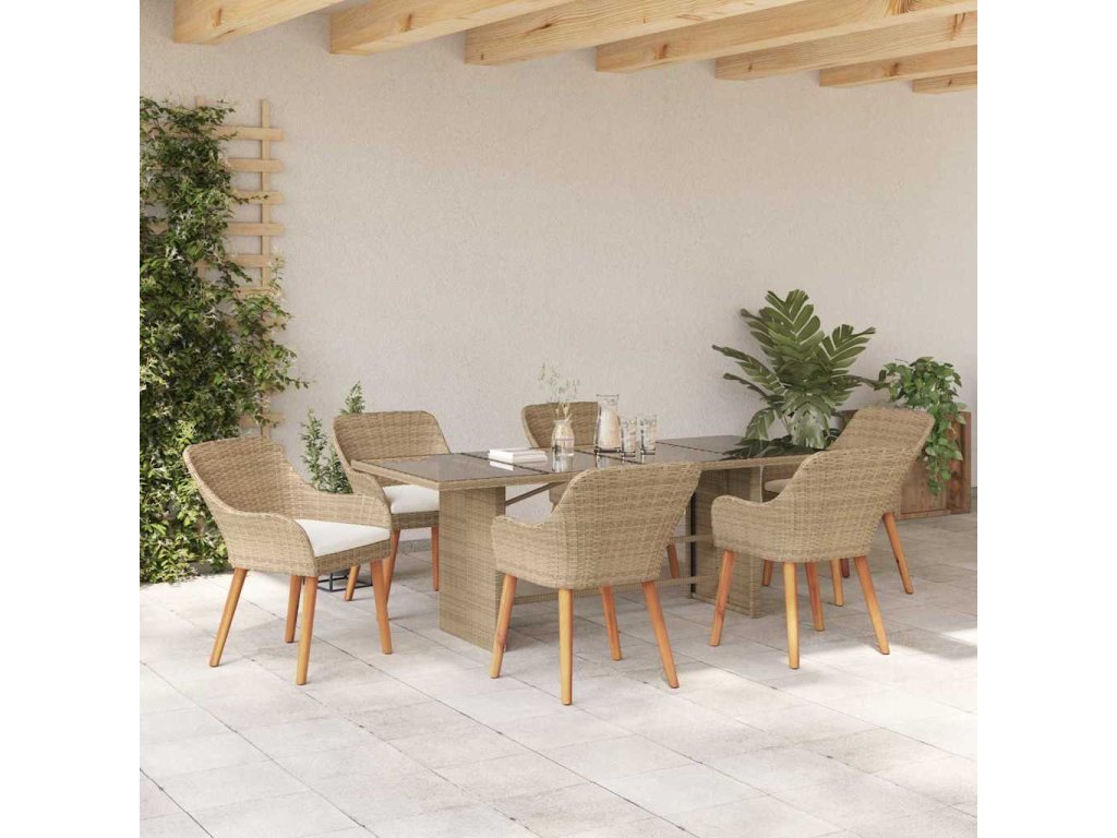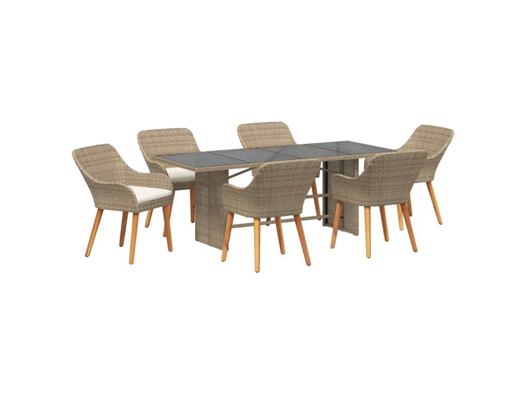 Zahradní jídelní souprava s polštářem 7 pcs Béžová polyratan 3261629