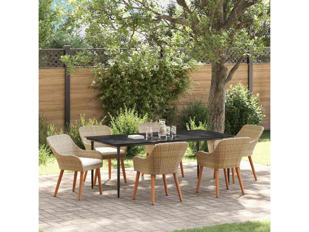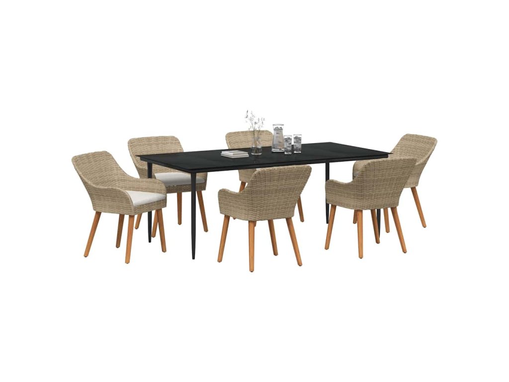 Zahradní jídelní souprava s polštářem 7 pcs Béžová polyratan 3261696