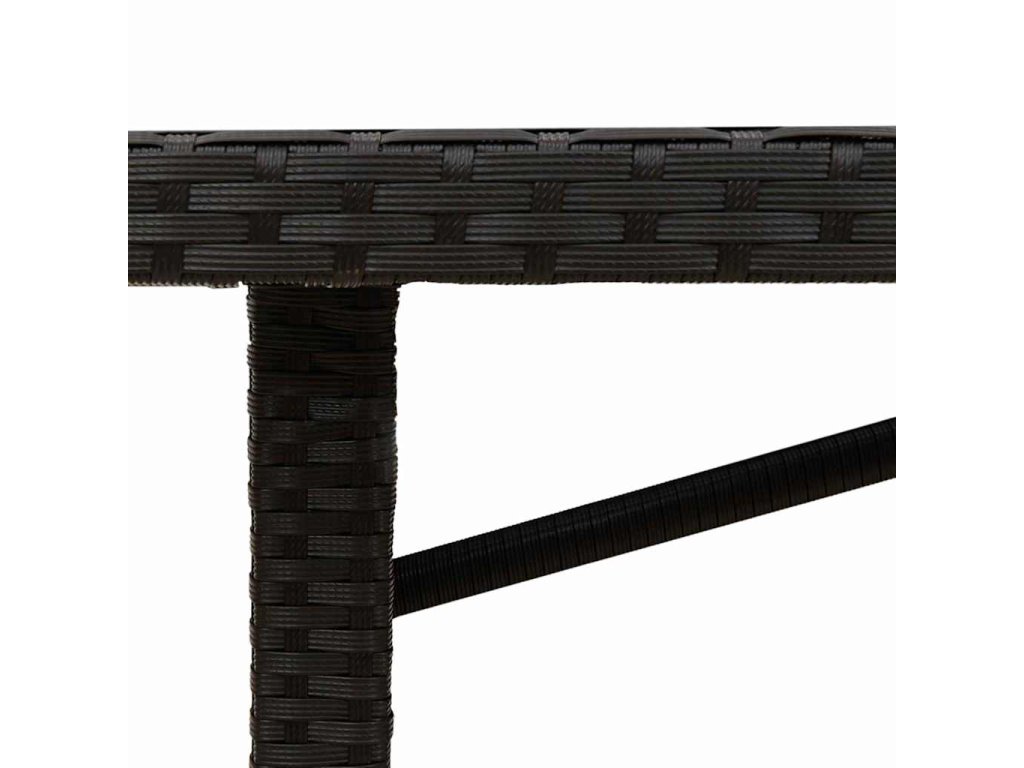 - Materiály nejvyšší kvality jídelní set je celý z poly ratanu, známého svou pevností a hezkým vzhledem. UV odolnost materiálu zaručuje dlouhou životnost a zachování jeho barev jak na slunci, tak ve stínu. Ocel je opatřena práškovým nátěrem pro extra odolnost a spolehlivý rám zvládne i drsné venkovní podmínky.