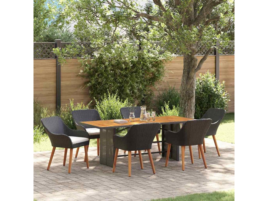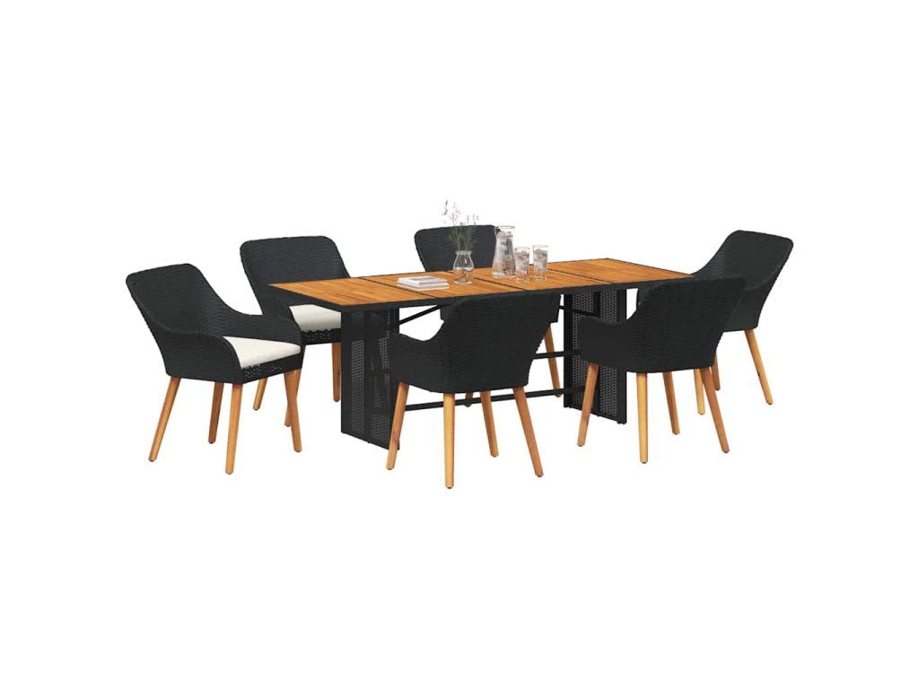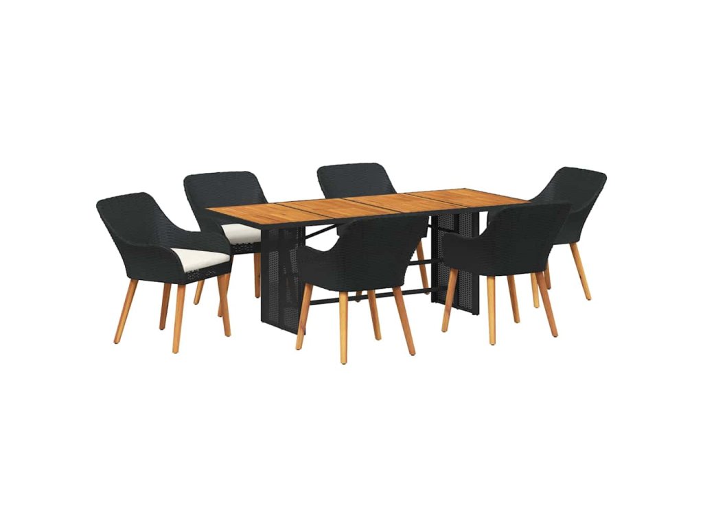 Zahradní jídelní souprava s polštářem 7 pcs Černá polyratan 3261623