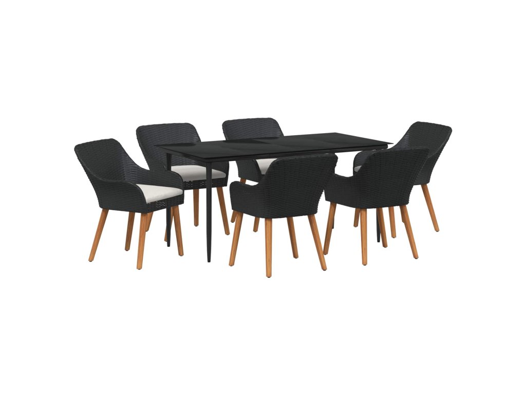 Zahradní jídelní souprava s polštářem 7 pcs Černá polyratan 3261667