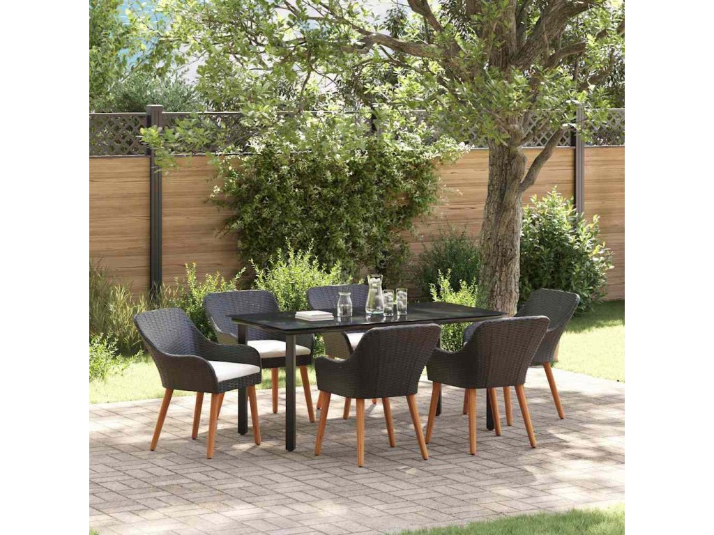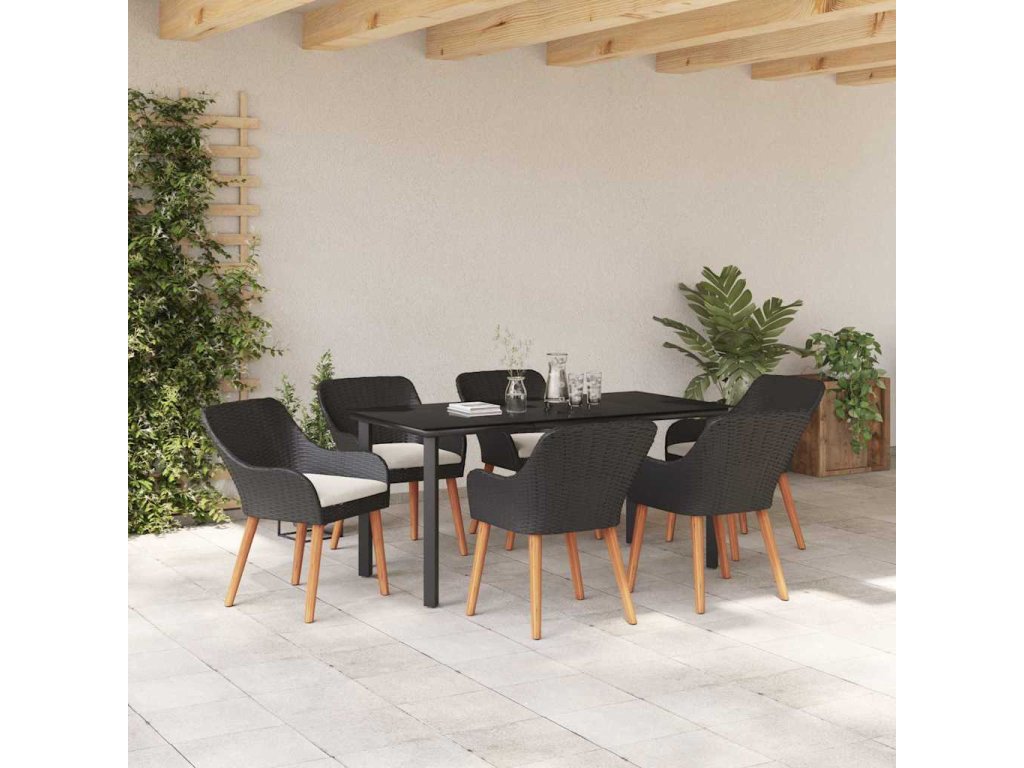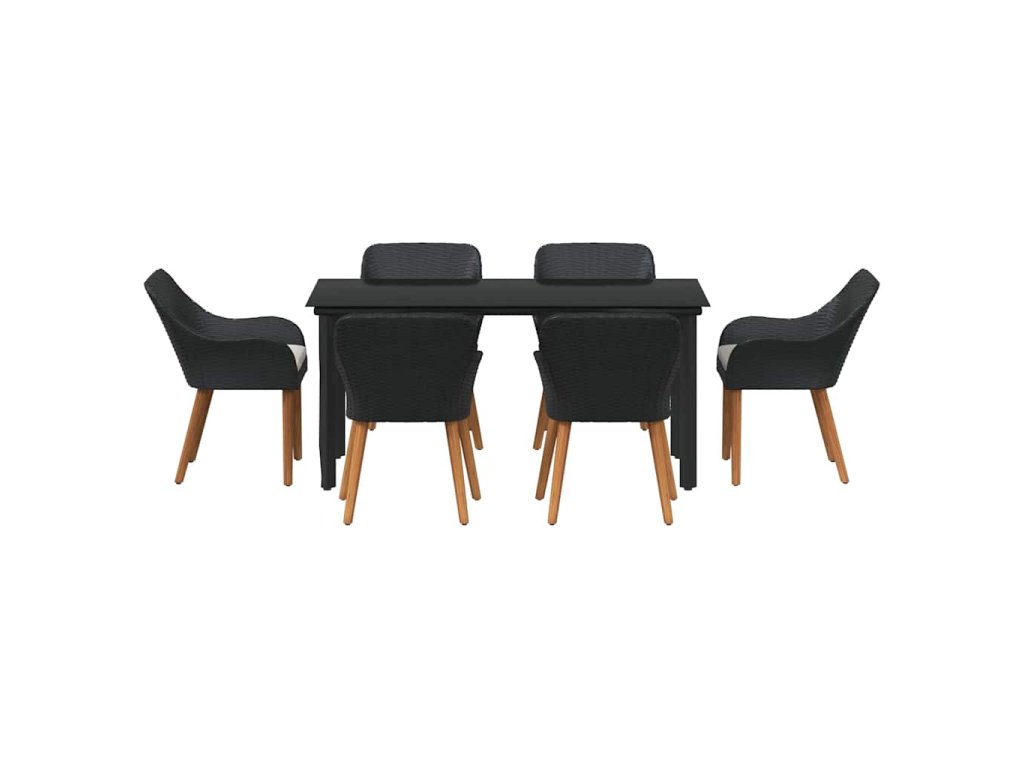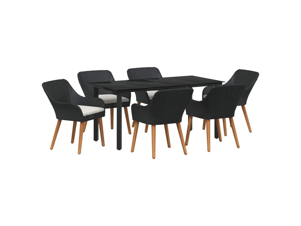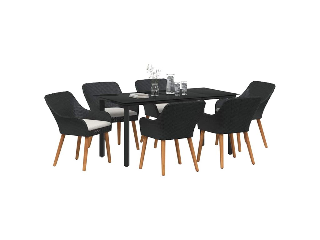 Zahradní jídelní souprava s polštářem 7 pcs Černá polyratan 3261674
