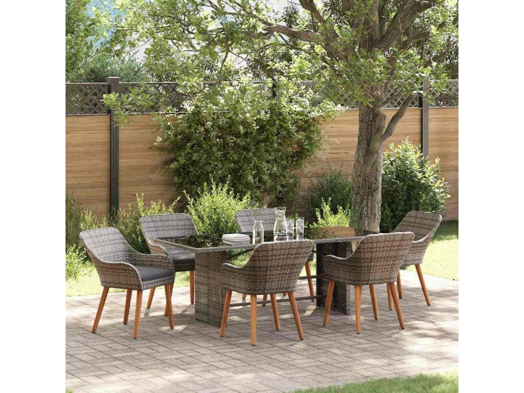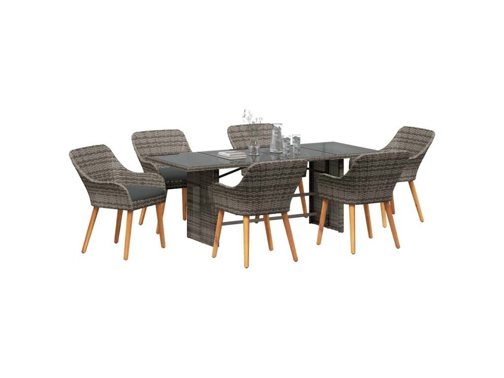 Zahradní jídelní souprava s polštářem 7 pcs Šedá polyratan 3261625