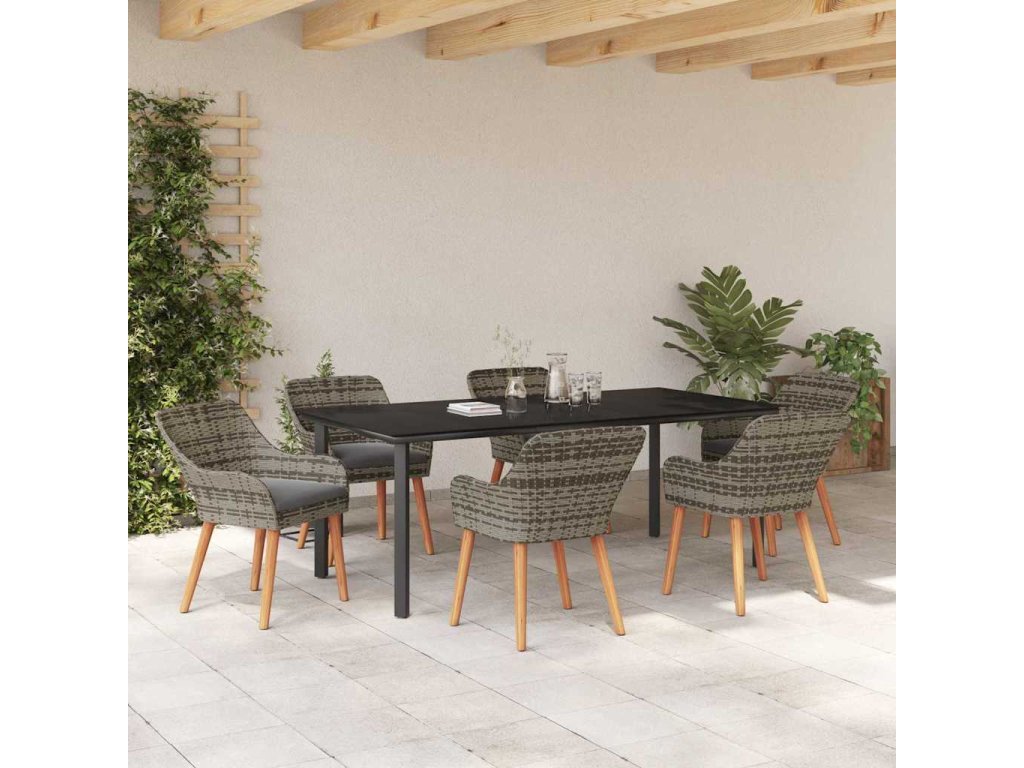 Zahradní jídelní souprava s polštářem 7 pcs Šedá polyratan 3261689