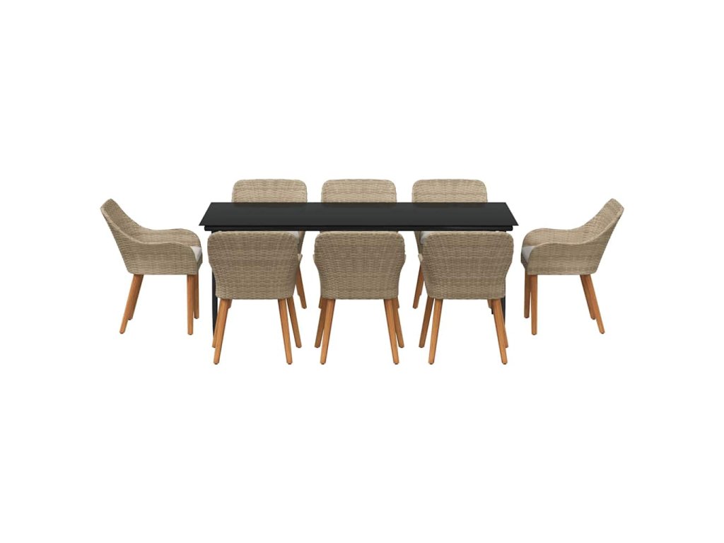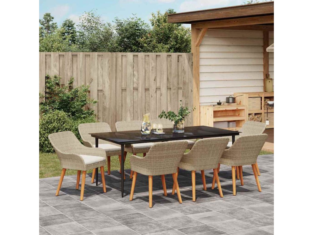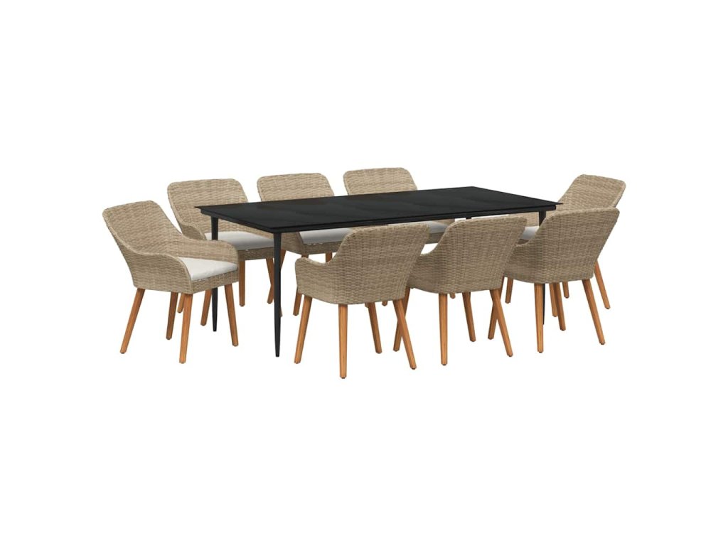Zahradní jídelní souprava s polštářem 9 pcs Béžová polyratan 3261697