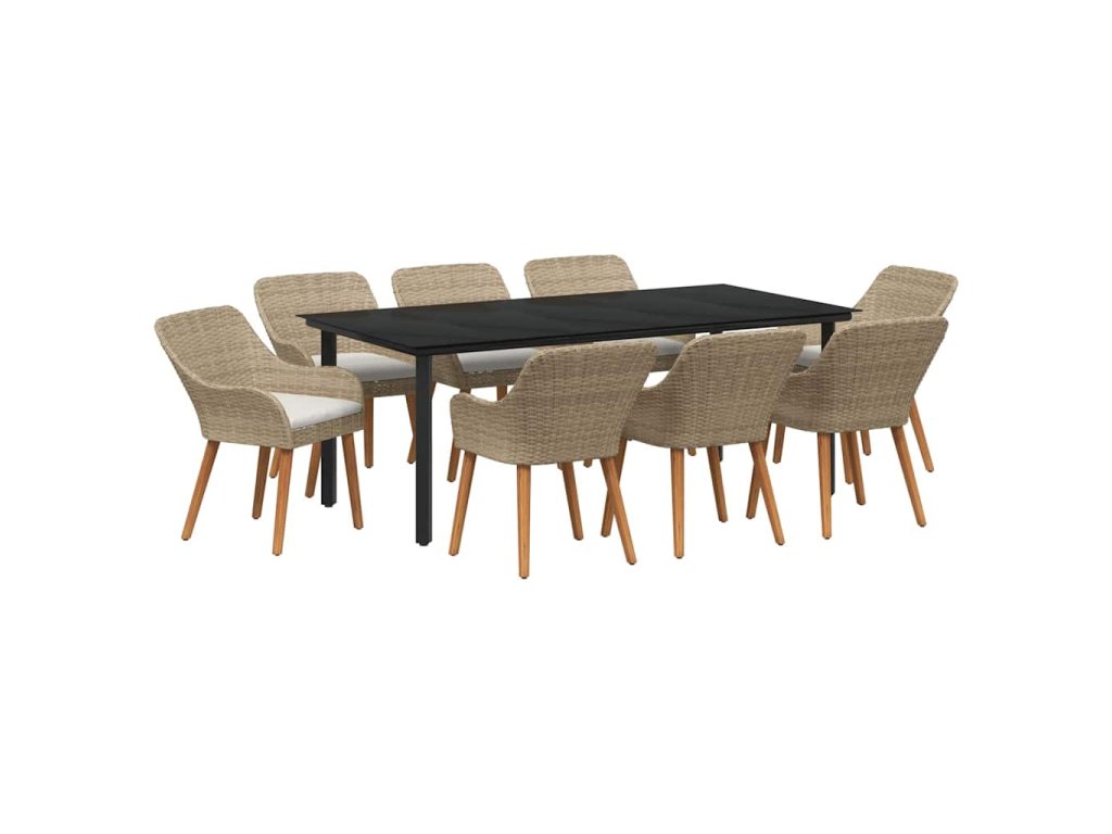 Zahradní jídelní souprava s polštářem 9 pcs Béžová polyratan 3261704