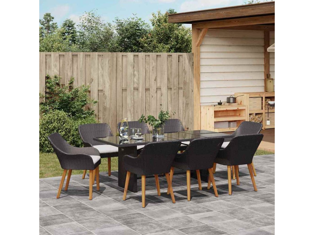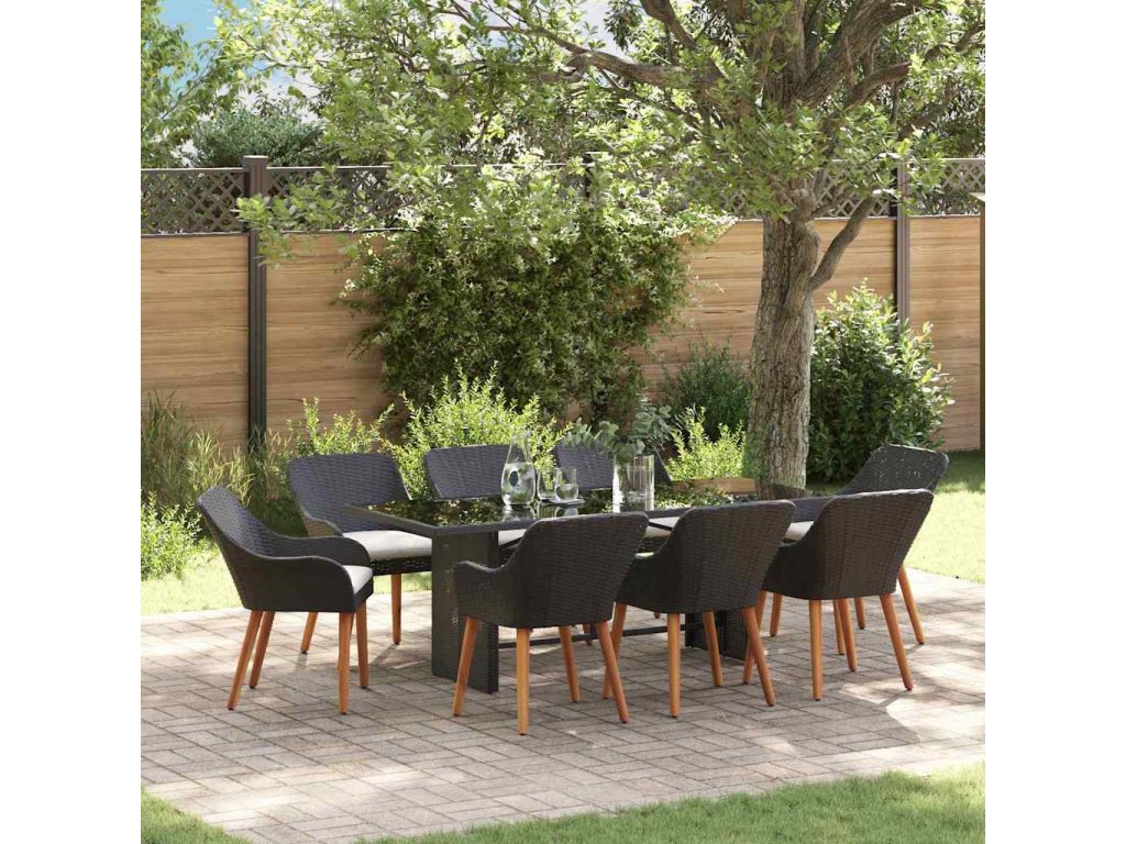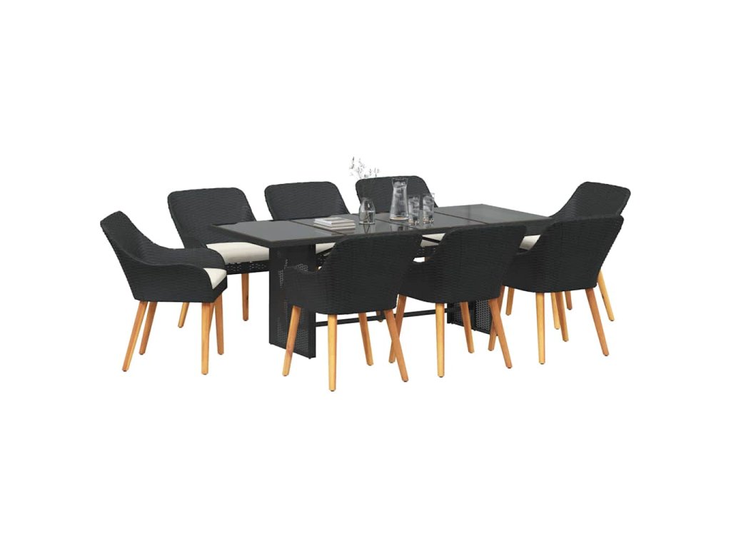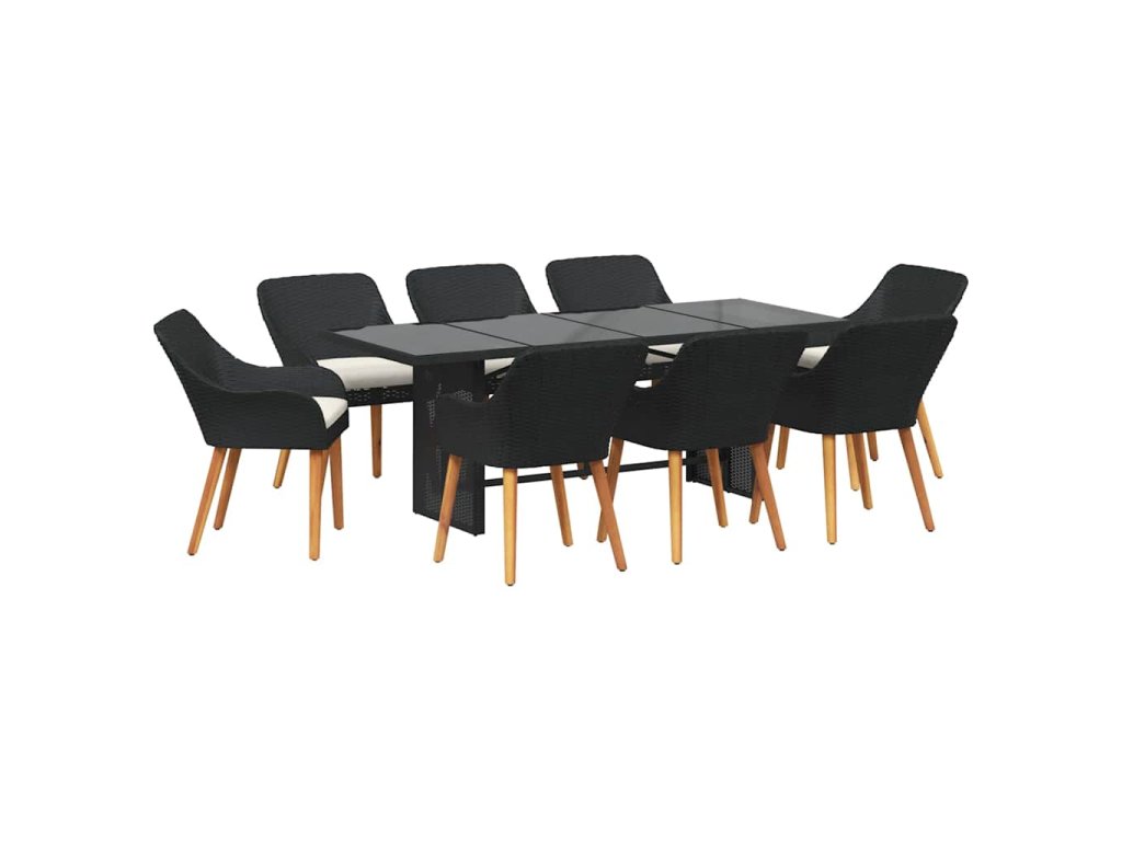 Zahradní jídelní souprava s polštářem 9 pcs Černá polyratan 3261622