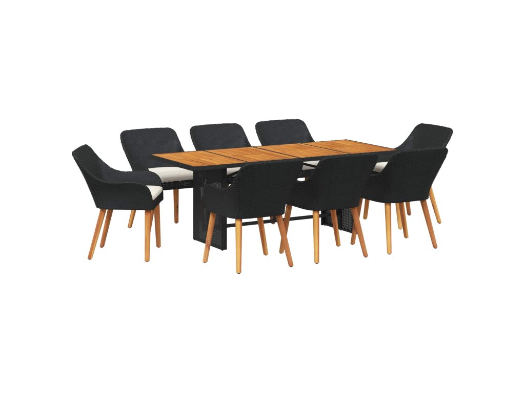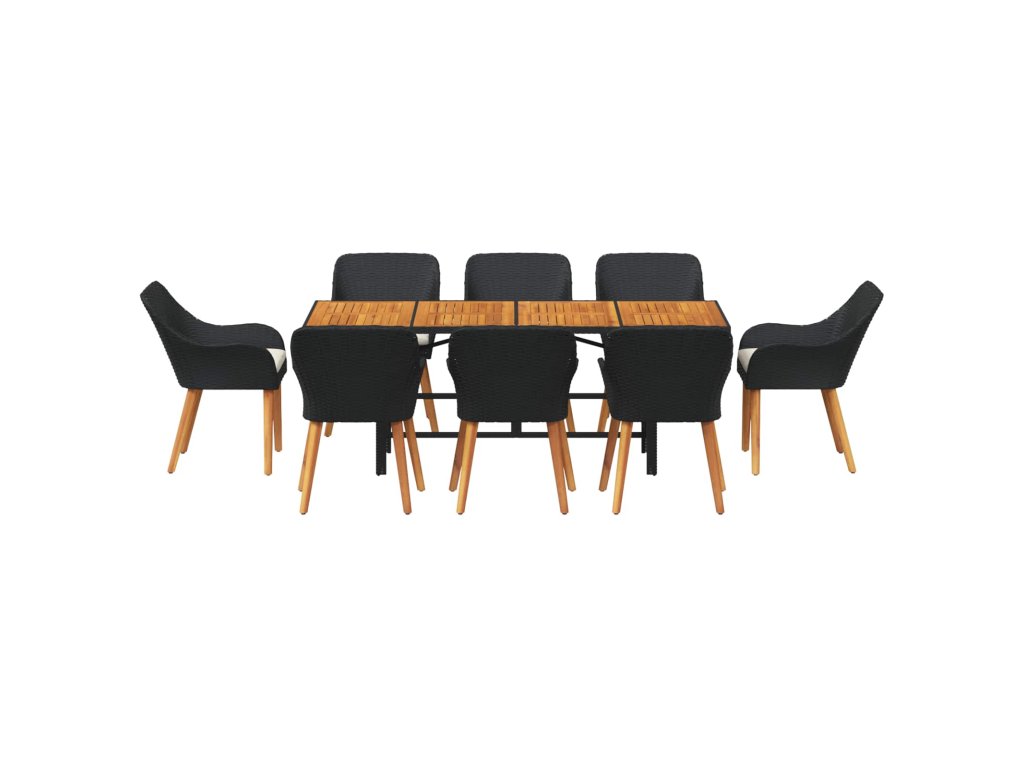 Zahradní jídelní souprava s polštářem 9 pcs Černá polyratan 3261624