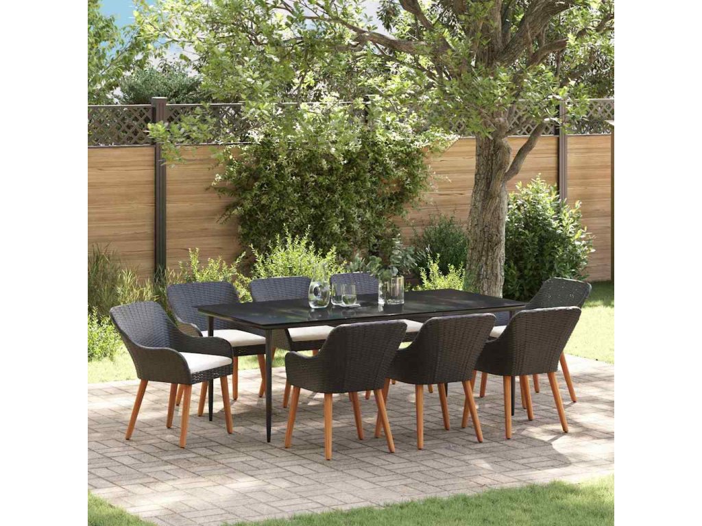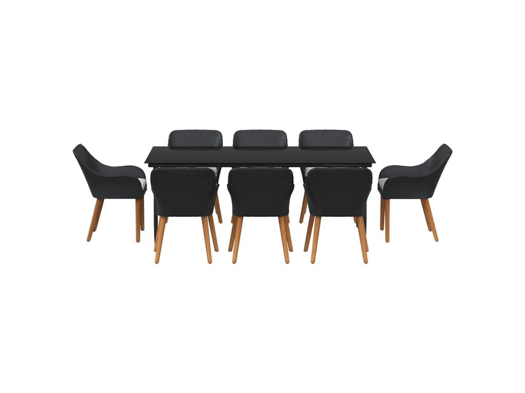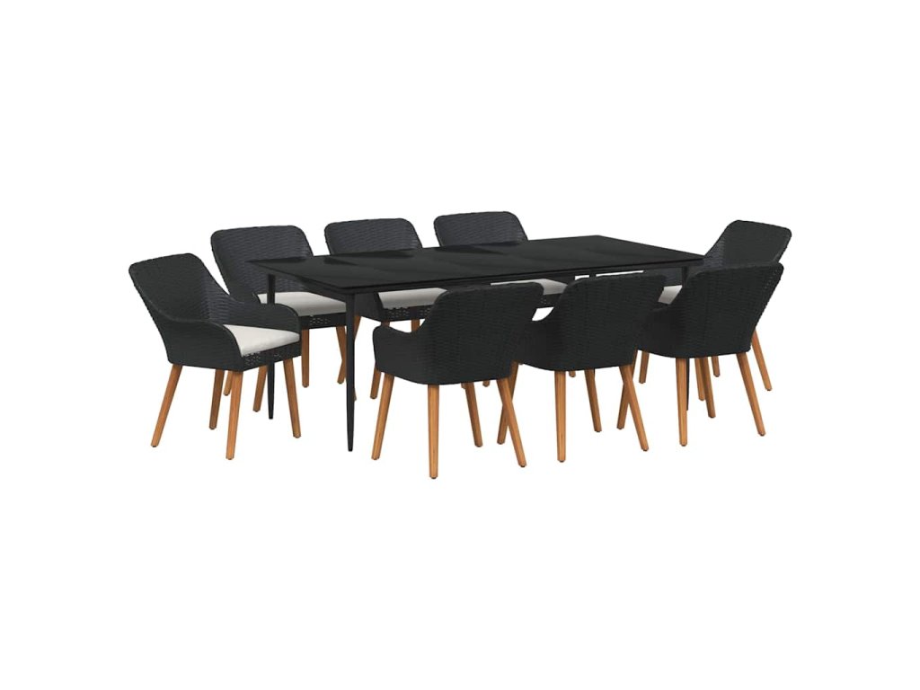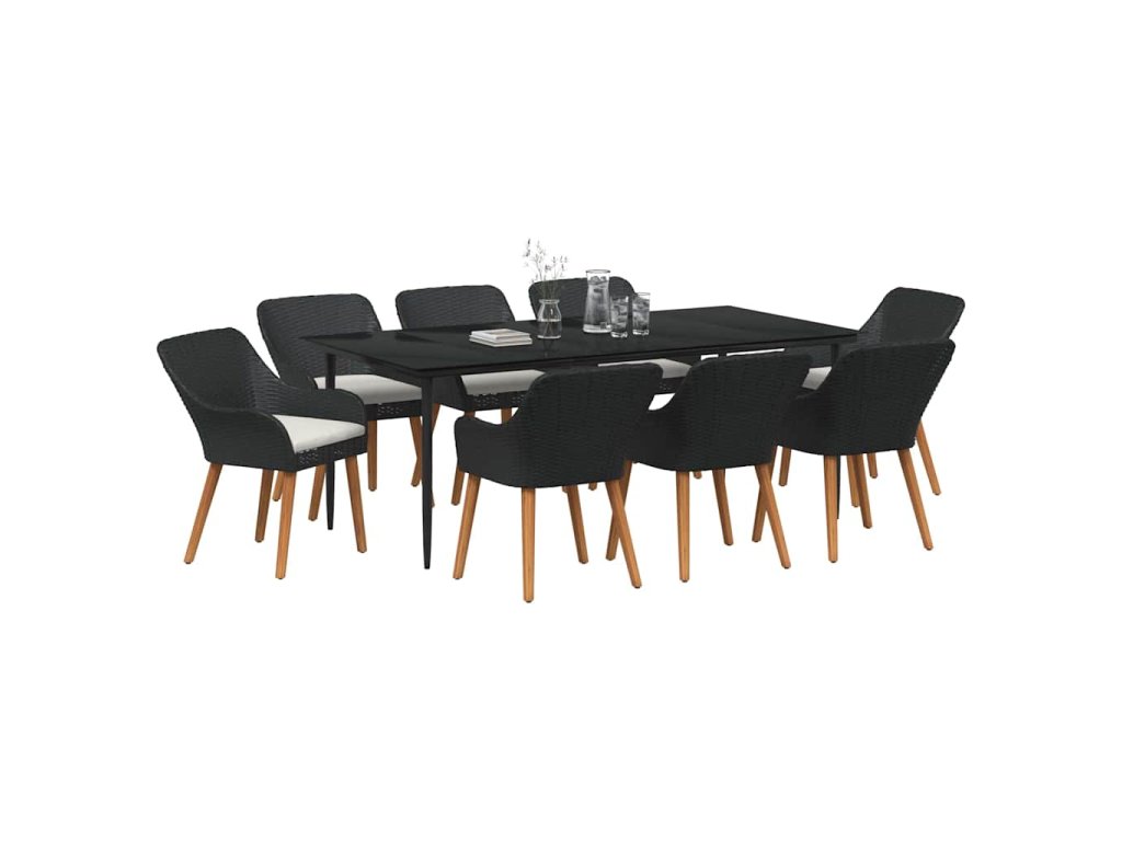 Zahradní jídelní souprava s polštářem 9 pcs Černá polyratan 3261669