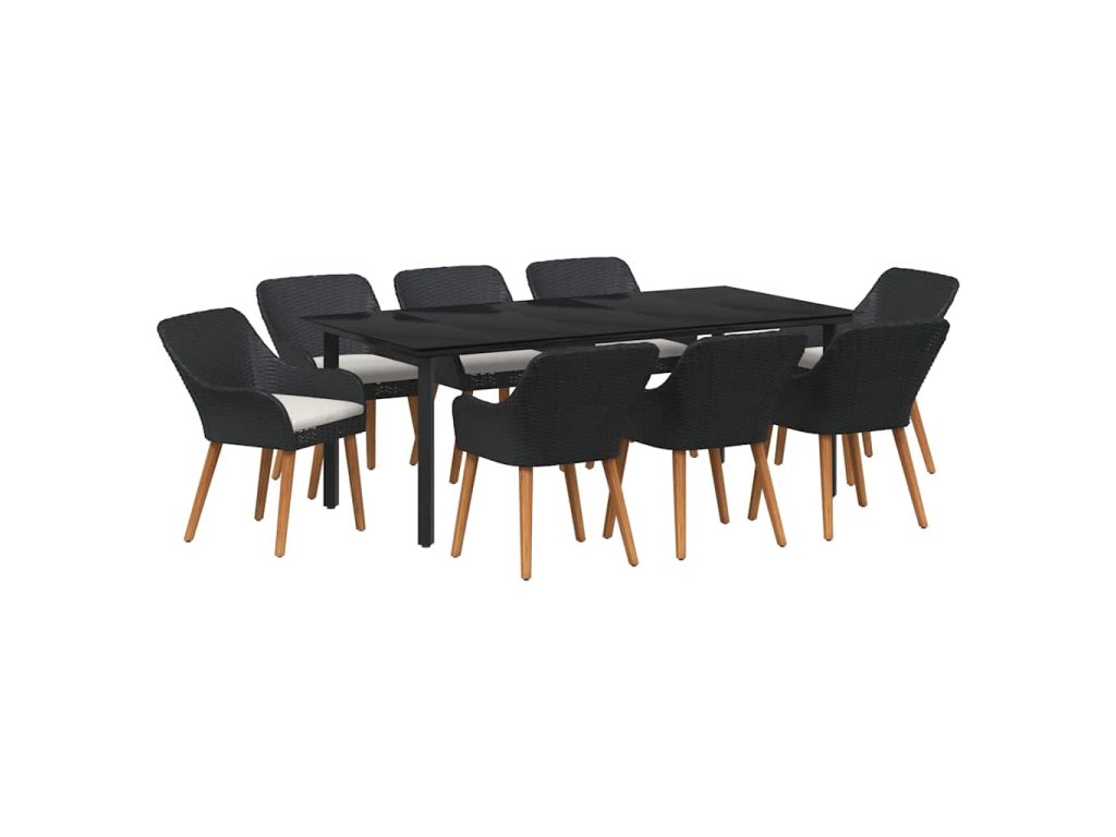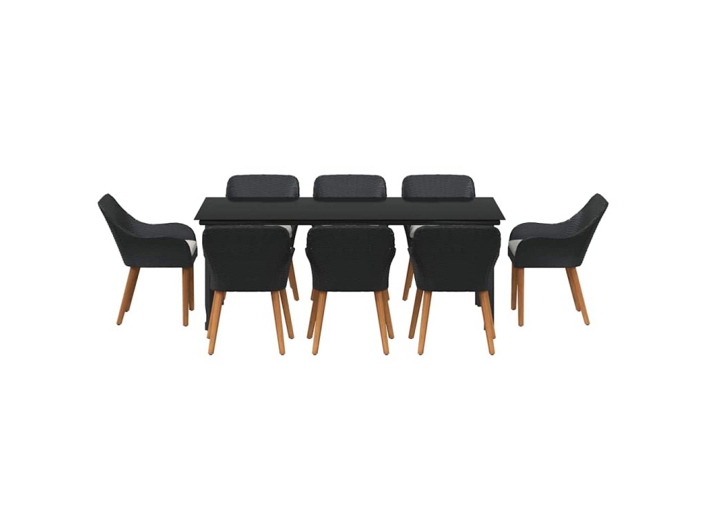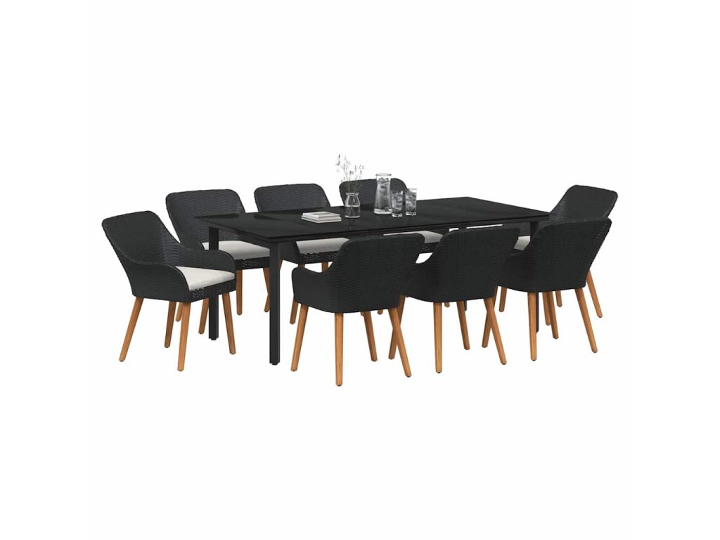 Zahradní jídelní souprava s polštářem 9 pcs Černá polyratan 3261676