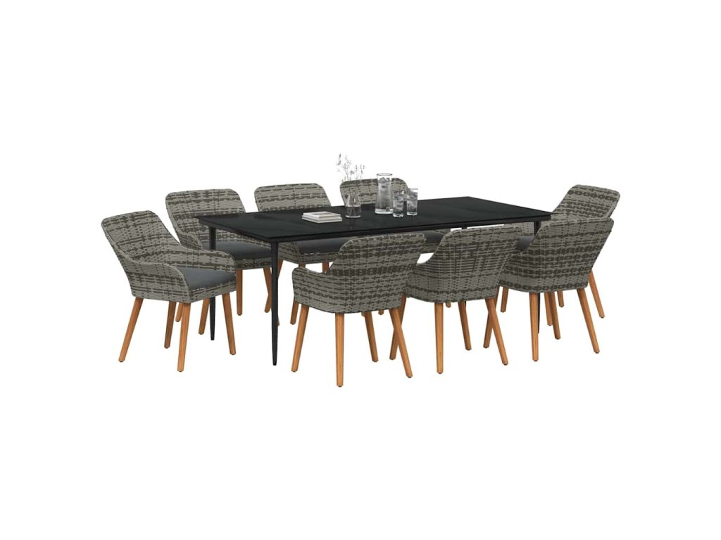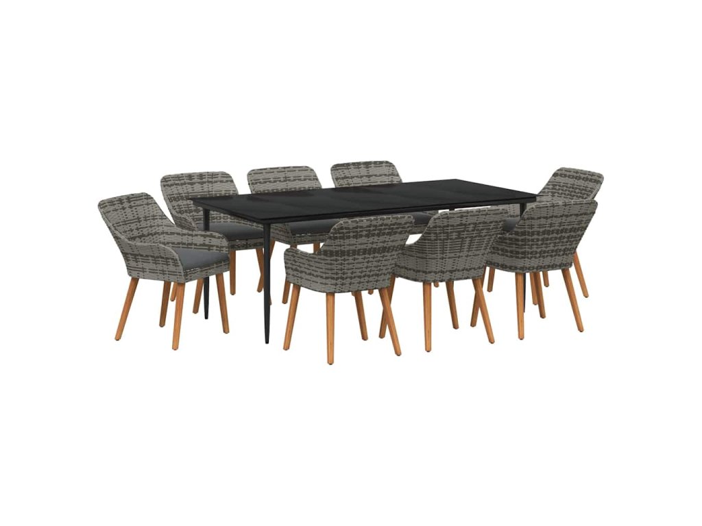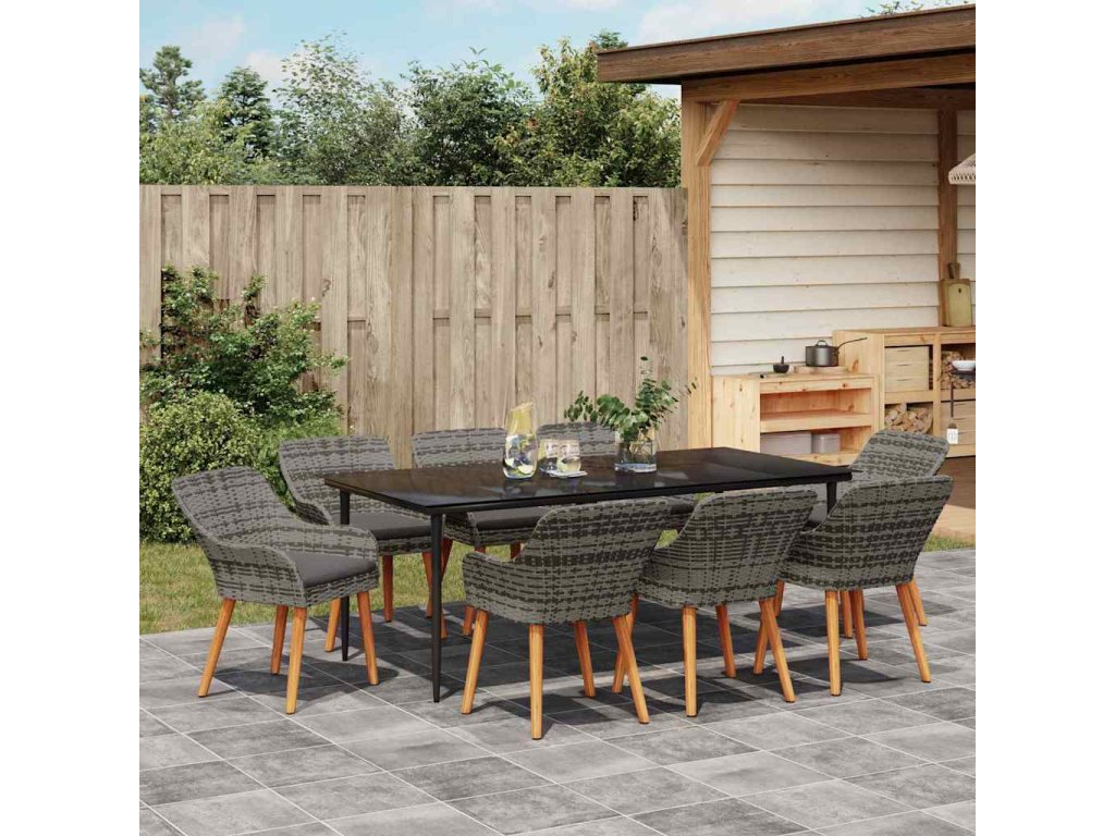 Zahradní jídelní souprava s polštářem 9 pcs Šedá polyratan 3261683