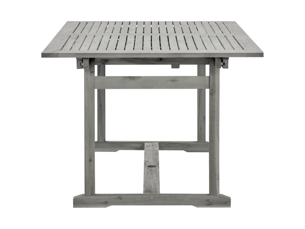 Tento zahradní stůl je vyrobený z masivního akáciového dřeva, tropického tvrdého dřeva, které je odolné vůči povětrnostním vlivům a má dlouhou životnost. Tento zahradní stůl je konstruován tak, aby se dal prodloužit, když potřebujete více místa.