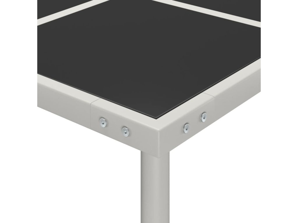 Vychutnejte si u tohoto jídelního stolu večeři pod hvězdami nebo slunečný oběd na terase. Tento terasový stůl s ocelovým rámem s práškovým nástřikem zajišťuje roky venkovního použití. Stolní deska je vyrobena ze skla a snadno se udržuje a čistí.