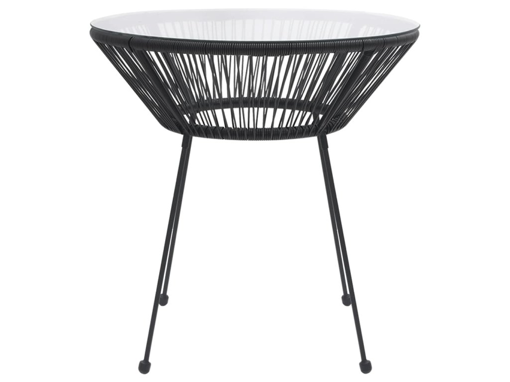 Stůl má výplet z voděodolného kulatého PVC ratanu, vrchní deska je z tvrzeného průhledného skla, stůl je tedy stabilní a snadno se čistí. Ocelový rám s práškovým nástřikem zajišťuje mimořádnou stabilitu. Ať už tento stůl použijete samostatně nebo v kombinaci s jiným nábytkem, skvěle zapadne do každého prostředí.