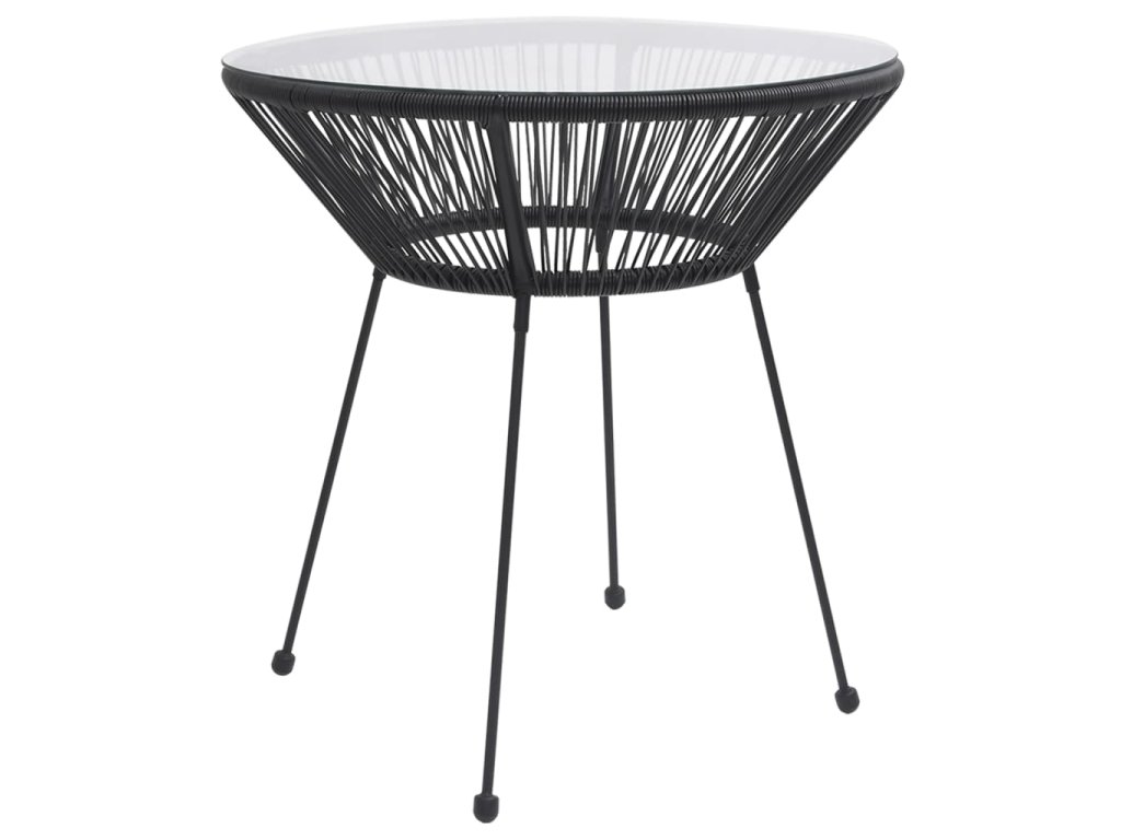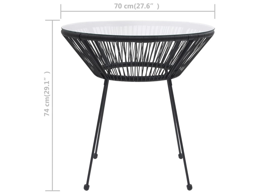 Zahradní jídelní stůl černý Ø 70 x 74 cm ratan a sklo 312165